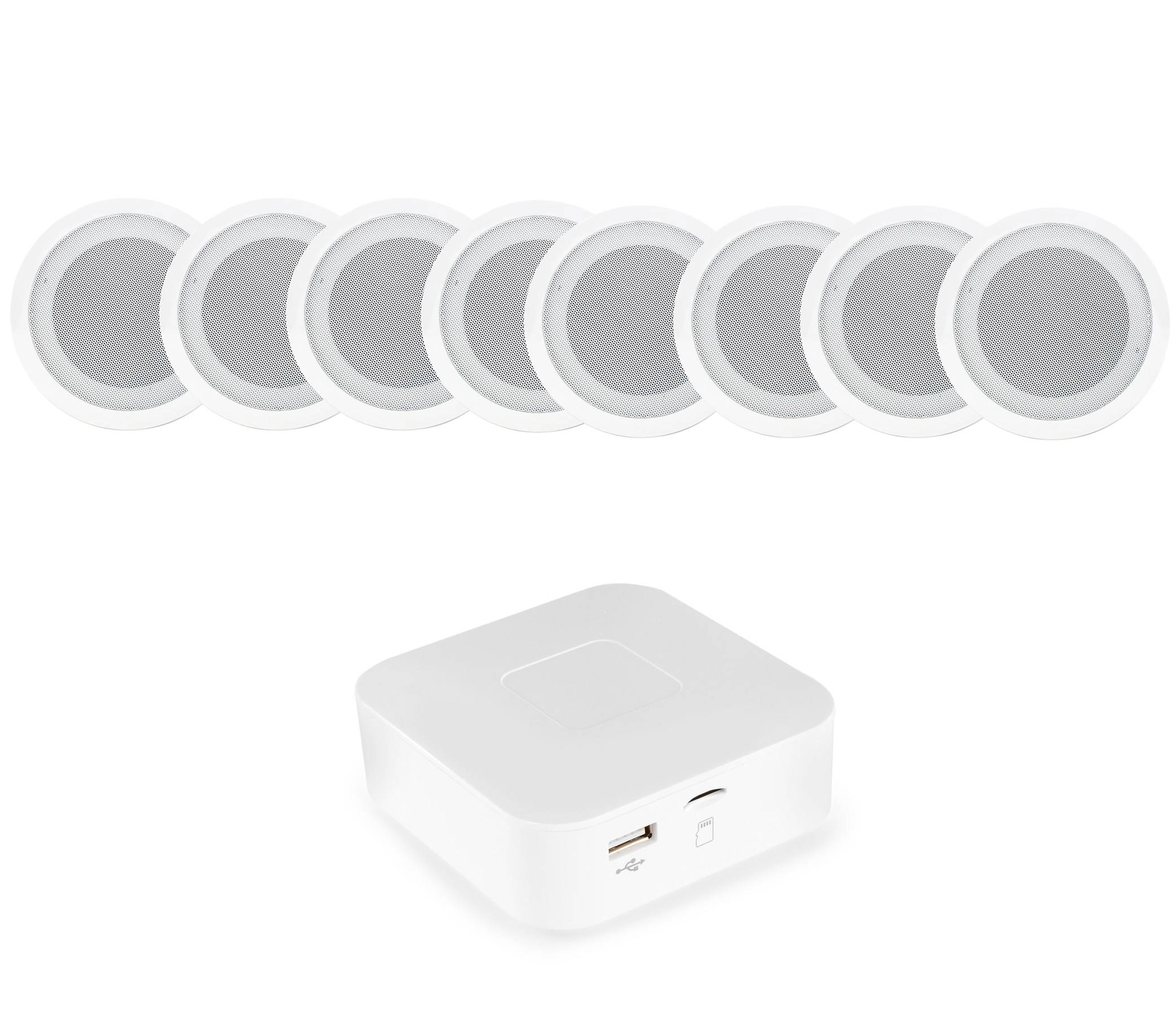 Акустичний комплект SKY SOUND BT-3008 WHITE складається з 8 стельових динаміків SKY SOUND S-2630W і одного підсилювача потужності SKY SOUND BT-230 . Комплект системи озвучування призначений для невеликих приміщень, кафе, салонів краси чи офісів тощо. (До 90 кв.м.).