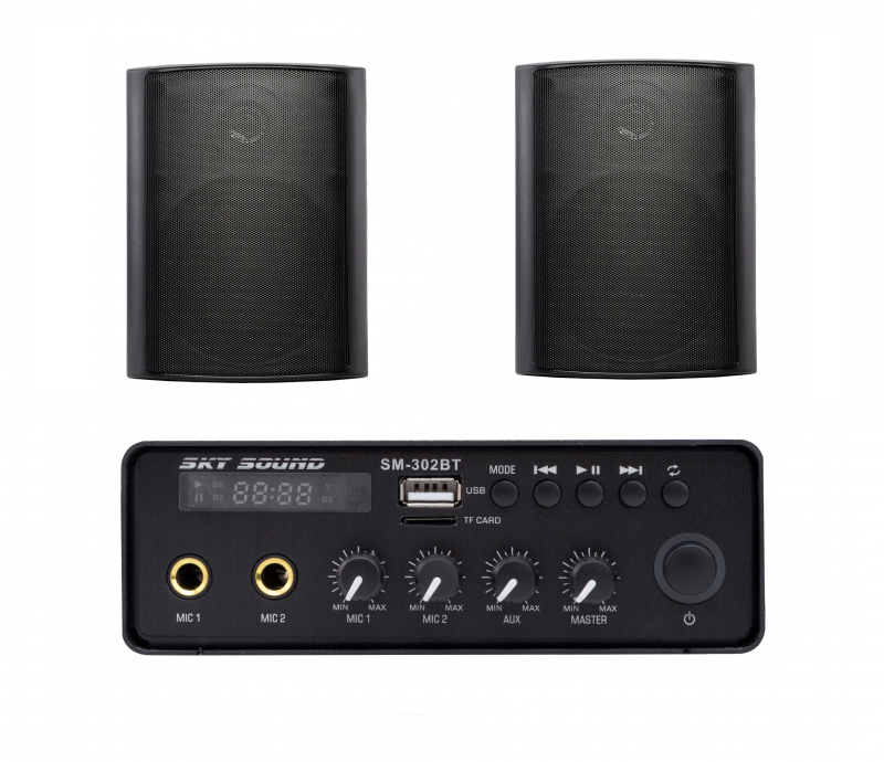 Акустичний комплект SKY SOUND SMN-3022 BLACK складається з одного компактного підсилювача потужності SKY SOUND SM-302 і 2-х настінних колонок SKY SOUND NS-30B/TB. Комплект системи фонового озвучування призначений для невеликих приміщень, кафе, салонів краси або офісів і т.д. (до 60 кв.м.).