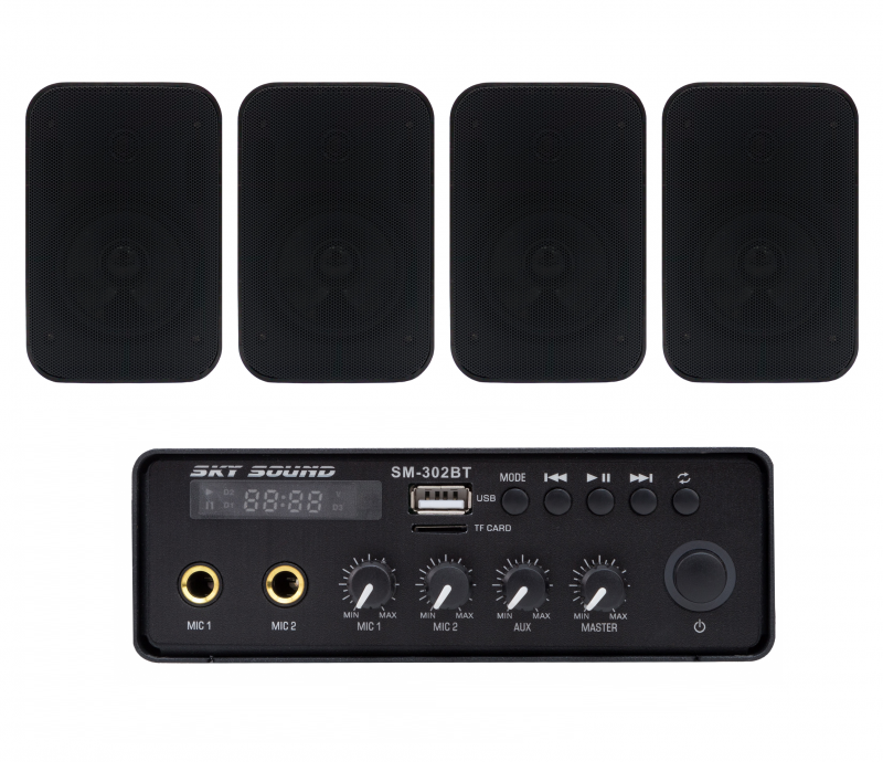 Акустичний комплект SKY SOUND SMP-1424 BLACK складається з одного компактного підсилювача потужності SKY SOUND SM-302 і 2-х настінних колонок SKY SOUND PM-1401B/TB. Комплект системи фонового озвучування призначений для невеликих приміщень, кафе, салонів краси або офісів і т.д. (до 60 кв.м.).