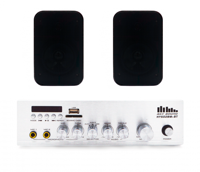 Акустический комплект SKY SOUND WMS-1204 BLACK состоит из 2-х настенных колонок SKY SOUND PM1401B/TB и одного усилителя мощности SKY SOUND HY602MB+BT. Комплект системы озвучивания предназначен для небольших помещений, кафе, салонов красоты или офисов и т.д. (до 40 кв.м.).