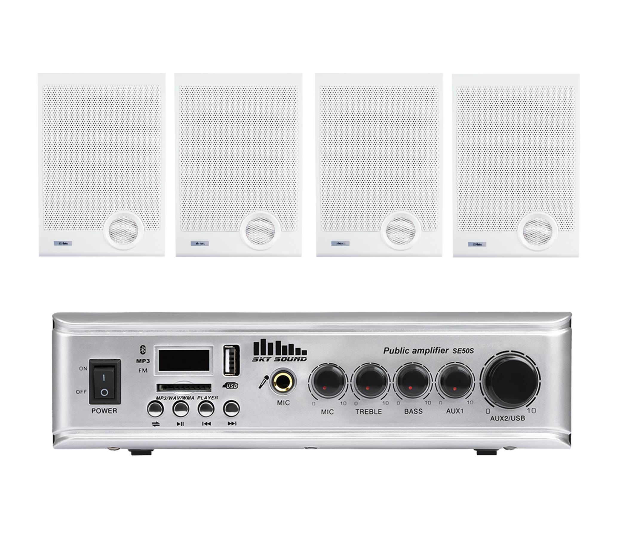 Акустичний комплект SKY SOUND WSE-2004 WHITE складається з 4-х настінних колонок SKY SOUND NS-20W/TW та одного підсилювача потужності SKY SOUND SE-50S . Комплект системи озвучування призначений для невеликих приміщень, кафе, салонів краси чи офісів тощо. (До 50 кв.м.).