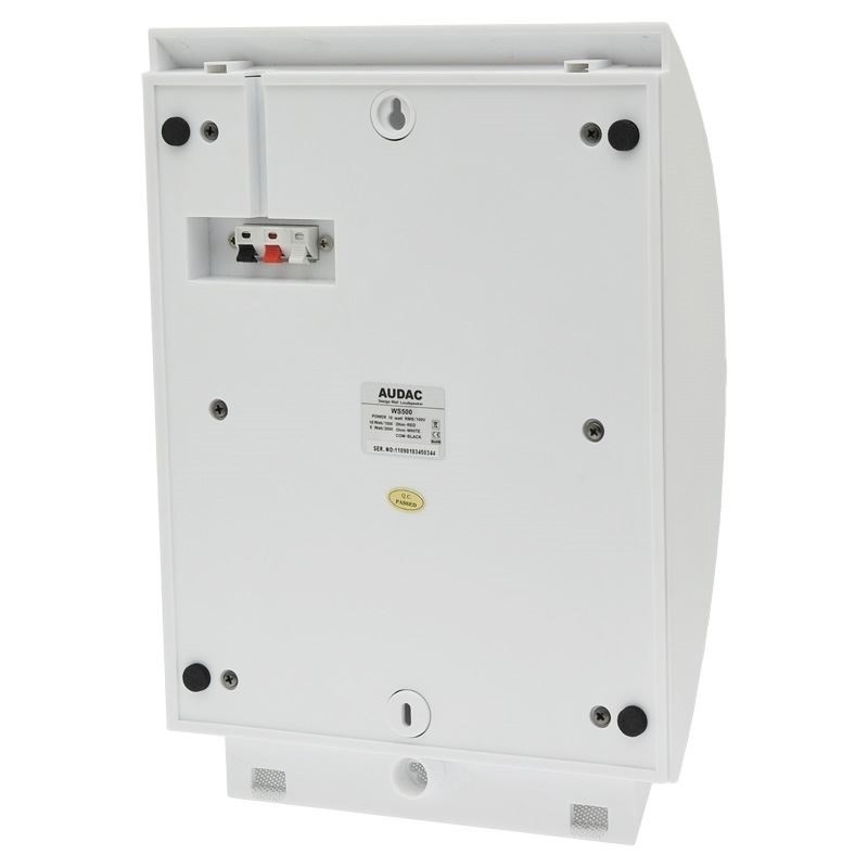 Audac WS500 – це компактний настінний гучномовець для накладного монтажу, призначений для систем фонового озвучування та оповіщення в комерційних та громадських приміщеннях, таких як магазини, ресторани, офіси, кафе та простори з підвищеною вологістю. Гучномовець оснащений 6.25-дюймовим (159 мм) широкосмуговим динаміком, що забезпечує чітку передачу мови та якісне відтворення музики. WS500 підтримує трансляційні лінії 100 В з відведеннями потужності 10 Вт та 5 Вт, а також низькоомний режим (8 Ом) з номінальною потужністю 10 Вт RMS. Корпус з ABS-пластику білого кольору (RAL 9003) з алюмінієвими решітками забезпечує естетичний зовнішній вигляд і стійкість до вологих умов завдяки рейтингу IP40. Монтаж здійснюється на рівну поверхню за допомогою двоточкового кріплення (дюбеля або шурупи). WS500 ідеально підходить для невеликих та середніх приміщень, а також для систем аварійного сповіщення, де потрібна надійність та компактність.