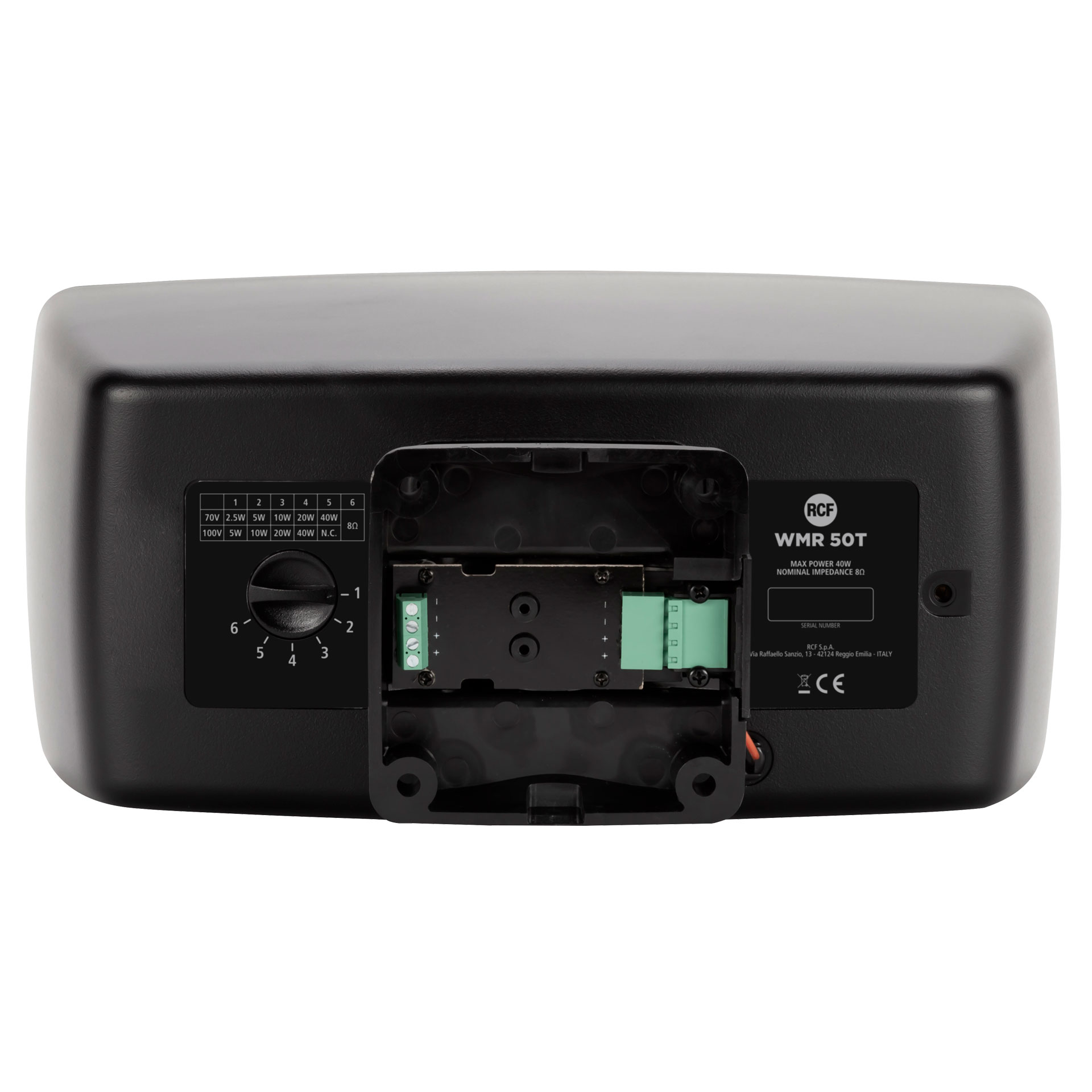 RCF WMR 50T – це двосмугова акустична система з трансформатором, призначена для широкого спектру застосувань, включаючи фонове озвучування та системи оповіщення в барах, ресторанах, готелях, розважальних центрах, торгових центрах і корпоративних просторах. Модель поєднує елегантний та ненав'язливий дизайн із високоякісними компонентами, забезпечуючи точне відтворення звуку та високу надійність.