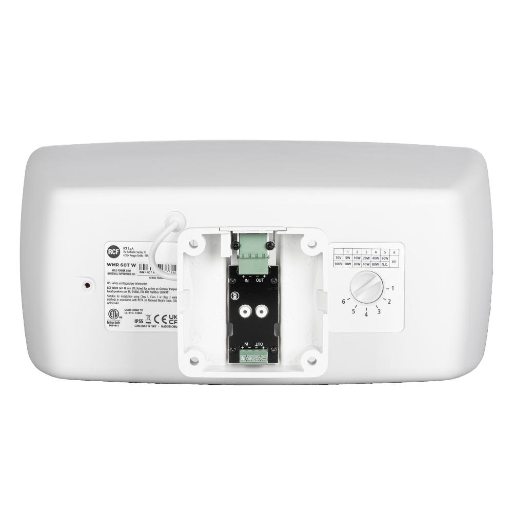 RCF WMR 60T W – це двосмугова акустична система з трансформатором, призначена для фонового озвучування та систем оповіщення в комерційних приміщеннях, таких як бари, ресторани, готелі, торгові центри, тематичні парки та офіси. Модель у білому кольорі (RAL 9016) поєднує елегантний дизайн із високоякісними компонентами, забезпечуючи точне відтворення звуку та високу надійність для музики та мовлення.
