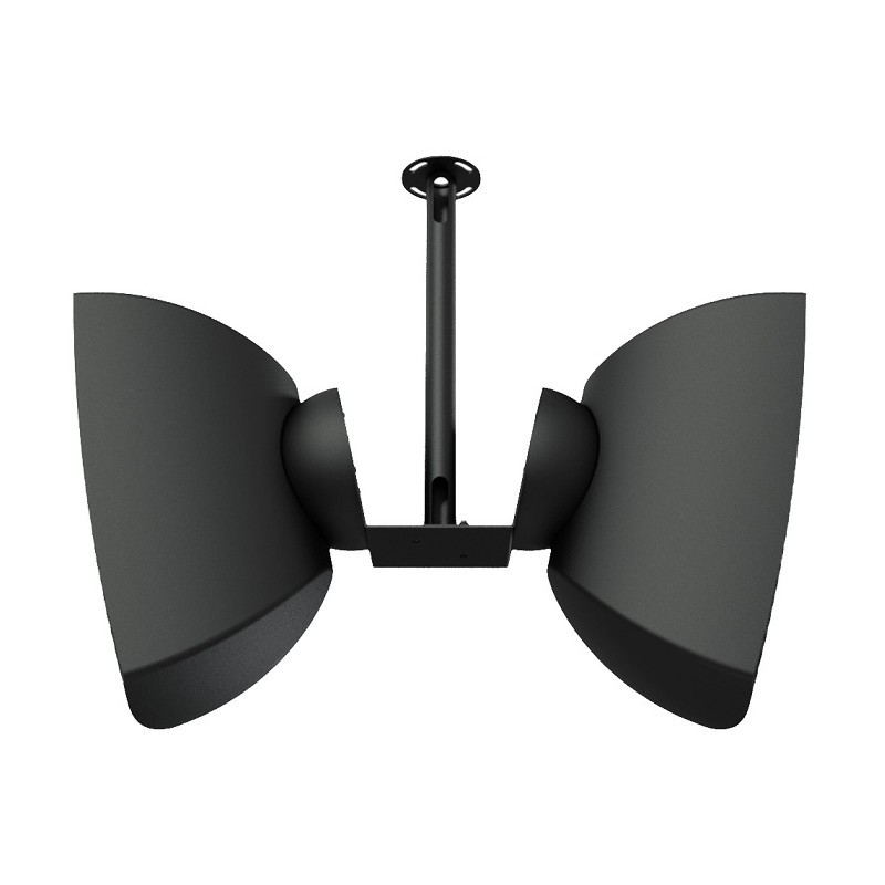 Типові приклади застосування - спортивні споруди, тренажерні зали, великі склади, коридори та багато іншого. CMA162 виготовлений з міцної сталі та поставляється у повністю зібраному вигляді, включаючи жердину та стельове кріплення. Відстань до стелі становить 360 мм, а щогла дозволяє інтегрувати кабель, що забезпечує чисте та елегантне рішення.