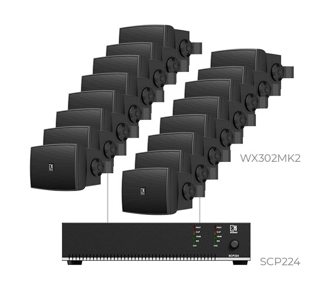 - 16 x Audac WX302MK2/O: Всепогодна акустична система