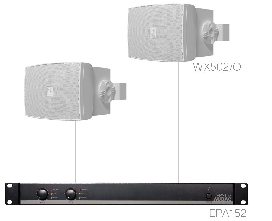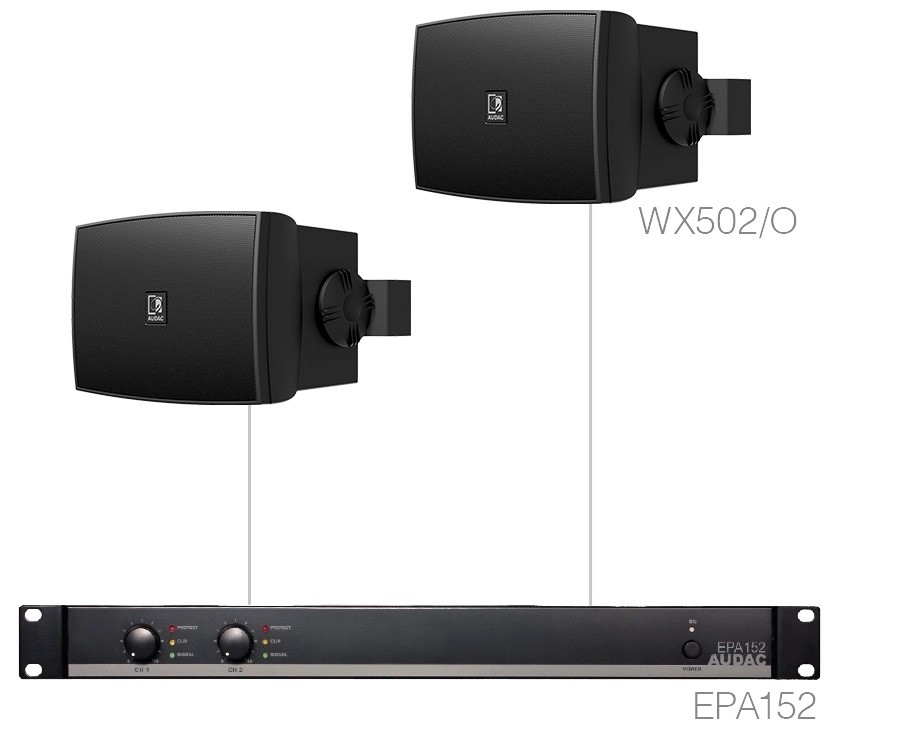- 2 x Audac WX502MK2/O: Всепогодна акустична система