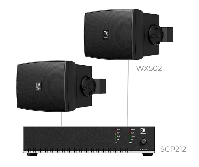 - 2 x Audac WX502MK2O: Всепогодна акустична система