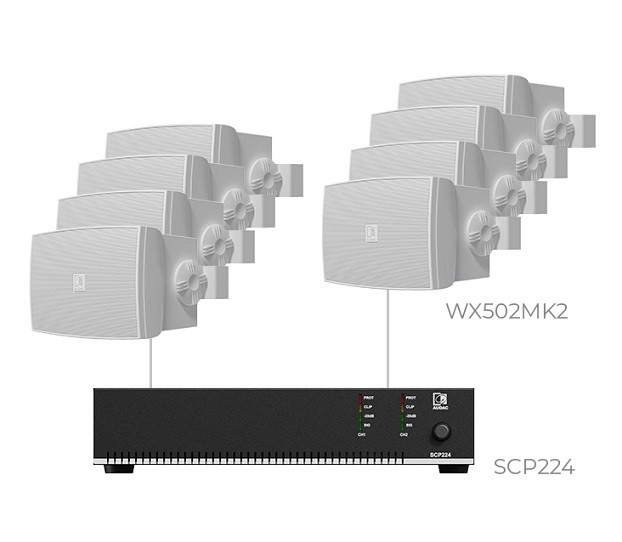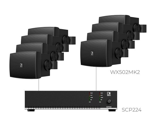 - 8 x Audac WX502MK2/O: Всепогодна акустична система