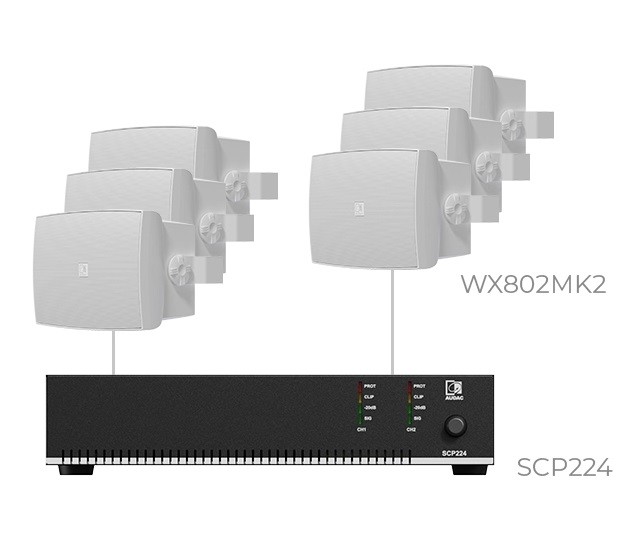- 6 x Audac WX802MK2: Всепогодна акустична система