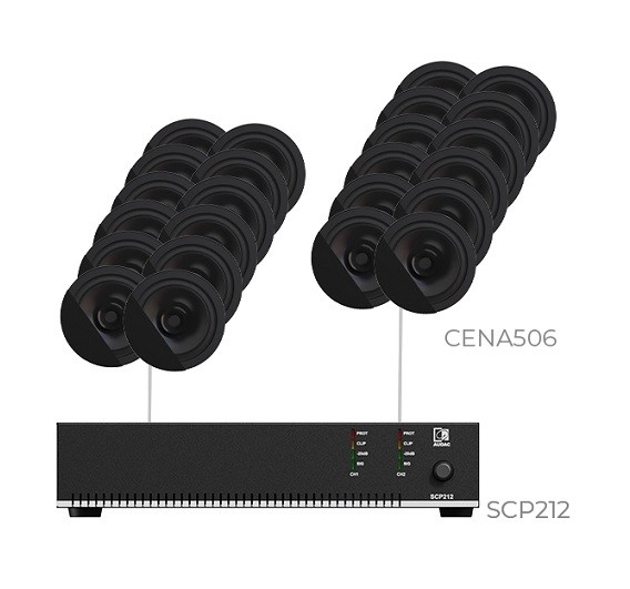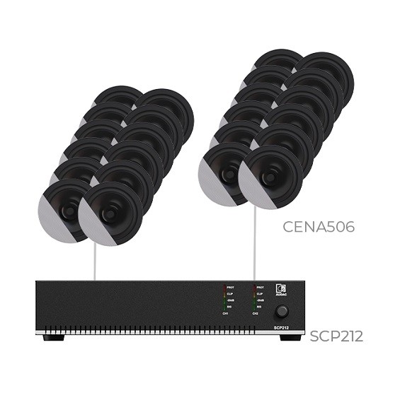 Акустичний комплект Audac CANTO5.24I — це готове рішення для високоякісного фонового озвучування та голосових оголошень у приміщеннях площею до 200 м². Комплект складається з двадцяти чотирьох двосмугових стельових гучномовців Audac CENA506 та одного двоканального підсилювача потужності Audac SCP212. Ця система ідеально підходить для встановлення в кафе, ресторанах, магазинах, офісах, навчальних залах та готельних номерах, де потрібен надійний, ефективний та естетичний звук.