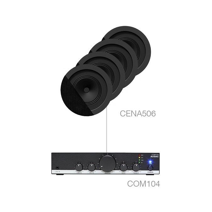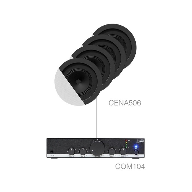 Акустичний комплект Audac CANTO5.4 — це готове рішення для високоякісного фонового озвучування та голосових оголошень у приміщеннях до 100 м². Комплект складається з чотирьох двосмугових стельових гучномовців Audac CENA506 та одного підсилювача потужності Audac COM104. Цей комплект ідеально підходить для встановлення в кафе, ресторанах, магазинах, офісах, навчальних залах та готельних номерах, де потрібен надійний, ефективний та естетичний звук.
