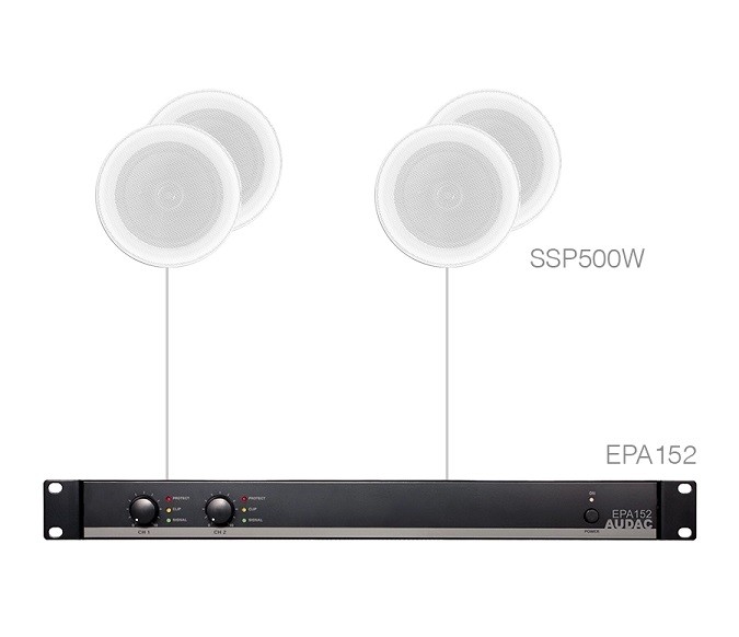 Акустичний комплект Audac PURRA4.4E — це готове рішення для високоякісного фонового озвучування та голосових оголошень у приміщеннях до 60 м². Комплект складається з чотирьох двосмугових настінних акустичних систем Audac SSP500 та одного двоканального підсилювача потужності Audac EPA152. Цей комплект ідеально підходить для встановлення в кафе, ресторанах, магазинах, офісах, навчальних залах та готельних номерах, де потрібен надійний, ефективний та естетичний звук.