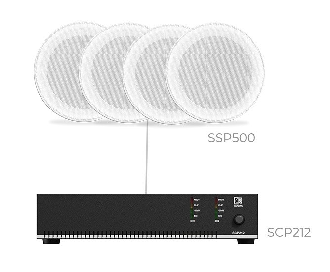 - Висока потужність: підсилювач SCP212 забезпечує достатню потужність для ефективного озвучування великих відкритих просторів.