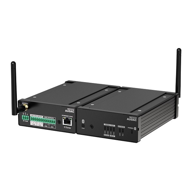 Audac NIO222 — мережевий модуль для комутації цифрових і аналогових аудіовходів/виходів із серії NIO, розроблений для роботи в мережах Dante™/AES67. Підходить для інтеграції з сучасними аудіосистемами, включаючи системи Bose Professional, завдяки підтримці PoE і гнучким підключенням.