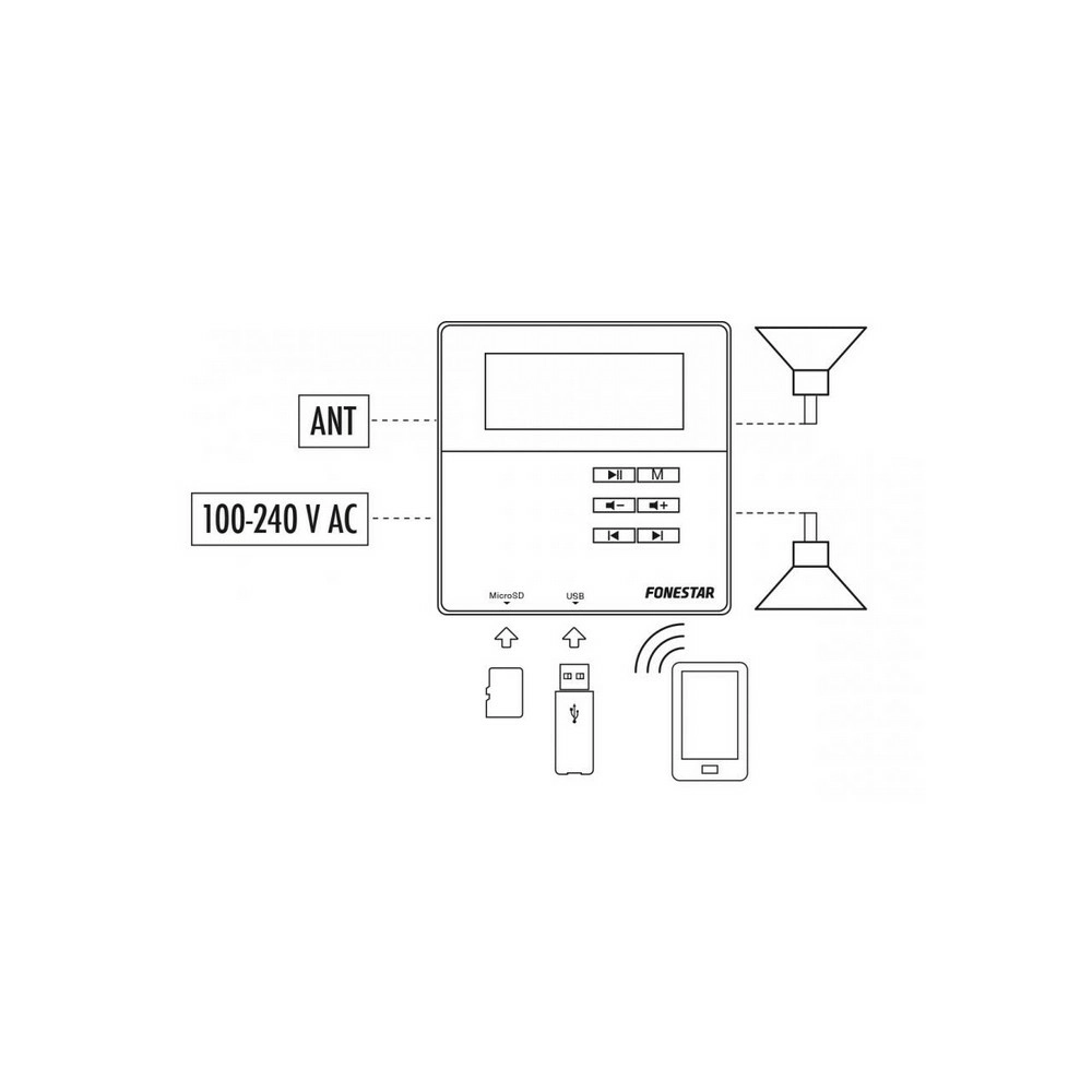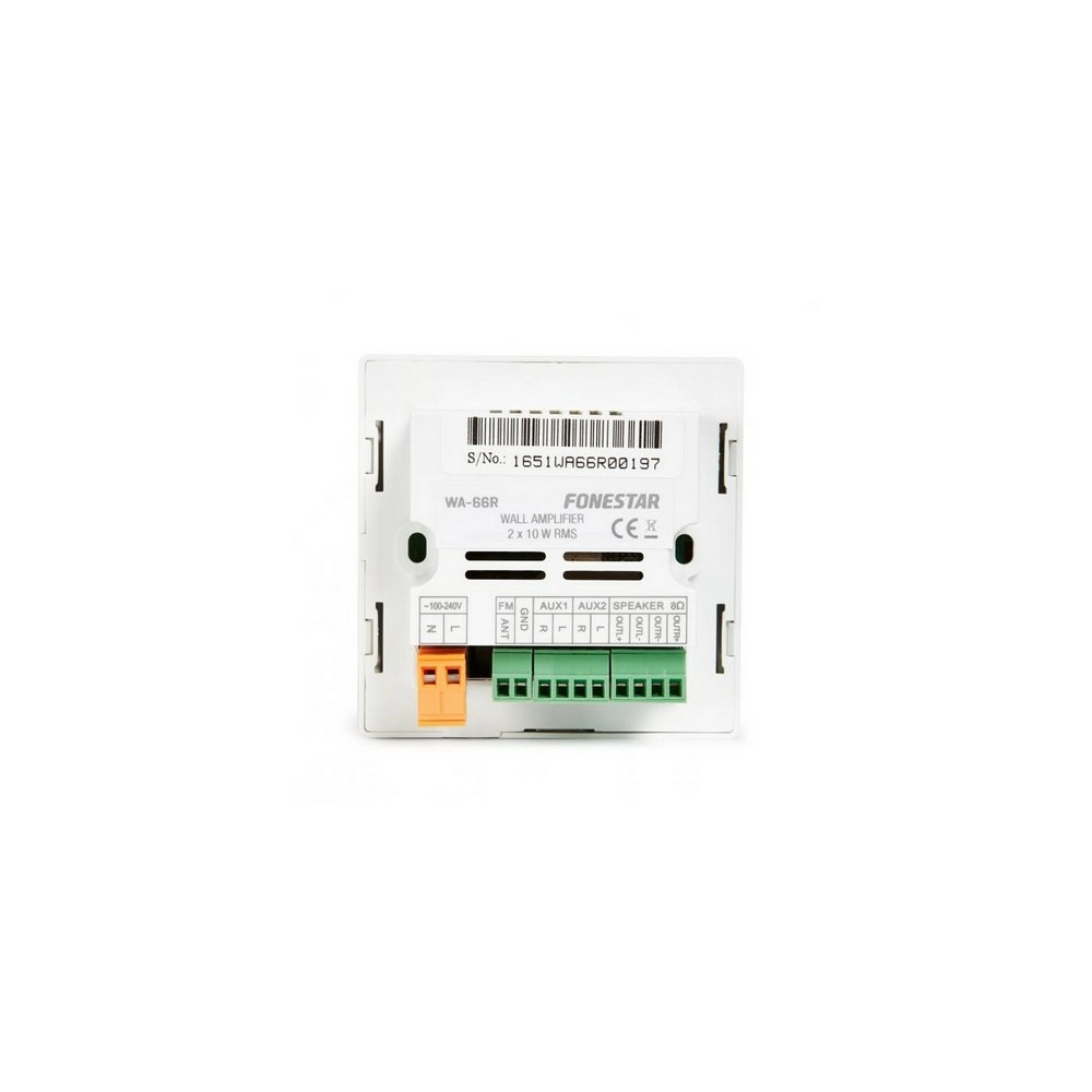 Fonestar WA-66R – стереопідсилювач для настінного монтажу розроблений для невеликих систем озвучування. Відрізняється компактністю, вбудованими функціями відтворення та простотою встановлення.