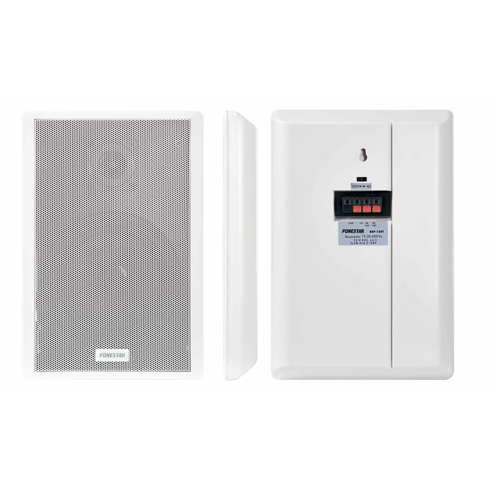 Fonestar BSP-120T – це ультратонка пасивна настінна акустична система з трансформатором, розроблена для комерційних інсталяцій. Оснащена 5.25-дюймовим низькочастотним динаміком на неодимовому магніті та 1-дюймовим твіттером, що забезпечують якісне звучання у компактному корпусі. Завдяки підтримці ліній 70 В/100 В (6 Вт) та номінальної потужності 20 Вт при 8 Ом, модель ідеально підходить для фонового озвучування у магазинах, офісах та громадських просторах. Простота установки досягається завдяки клемам з пружинними роз'ємами та тонким профілем (37 мм).