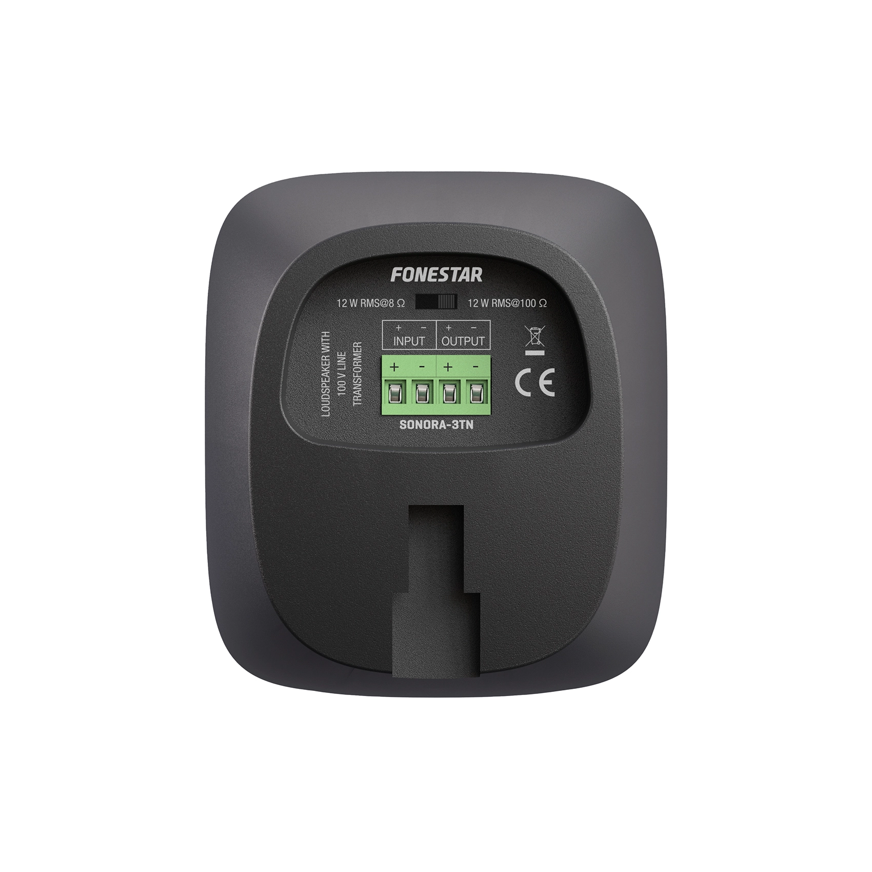 Fonestar SONORA-3TN – це компактний настінний гучномовець із серії SONORA, розроблений для систем громадського оповіщення та фонового озвучування у комерційних приміщеннях, таких як ресторани, кафе, супермаркети, торгові центри та офіси. Оснащений 3-дюймовим (76.2 мм) повнодіапазонним динаміком, SONORA-3TN забезпечує чіткий і чистий звук без спотворень, що підходить для відтворення мови та музики. Гучномовець підтримує лінії 100 В (12/6/3/1.5 Вт) та низькоомний режим (8 Ом), що дозволяє використовувати його в розподілених аудіосистемах або зі звичайними підсилювачами. Корпус з ABS-пластику з алюмінієвою решіткою забезпечує довговічність та елегантний дизайн, а регульований кронштейн дозволяє встановлювати гучномовець у горизонтальному чи вертикальному положенні. SONORA-3TN призначений тільки для використання всередині приміщень, тому що не має захисту від вологи (на відміну від моделей SONORA-4TN та вище, з IP66).