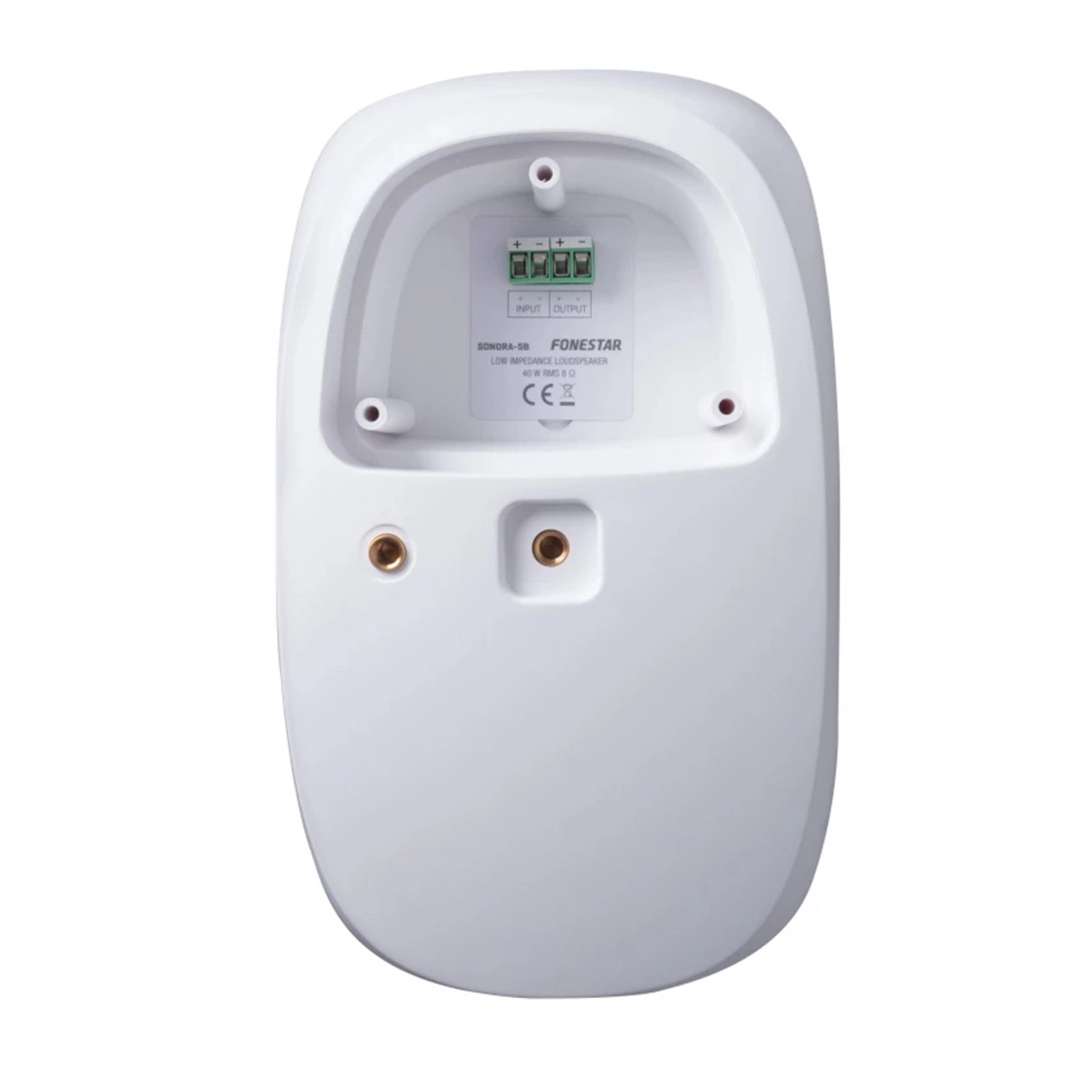 Fonestar SONORA-5B – пасивна настінна двосмугова акустична система серії SONORA, розроблена для низькоомних звукових систем. Призначена для фонового озвучування та систем оповіщення у громадських місцях, таких як ресторани, кафе, супермаркети та торгові центри, а також для вуличних інсталяцій завдяки захисту IP-66 та стійкості до сольового туману. Забезпечує чистий звук без спотворень, елегантний дизайн та просте встановлення. Ідентична моделі SONORA-5N за технічними характеристиками, але відрізняється кольором корпусу (білий RAL 9003 замість чорного RAL 9005).