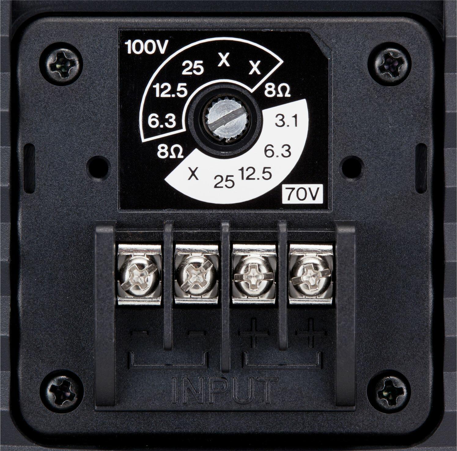 - Трансляційні лінії 100 В: Вбудований трансформатор дозволяє легко інтегрувати акустику у великі розподілені системи з відведеннями на 25 Вт, 50 Вт та 100 Вт.