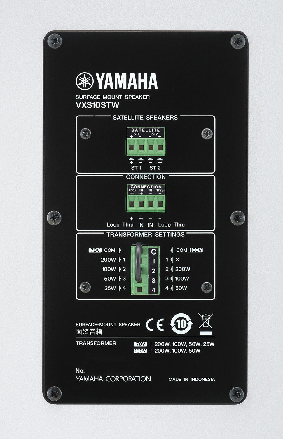 Yamaha VXS10ST – це 10-дюймовий сабвуфер із подвійною звуковою котушкою, призначений для високоякісного відтворення низьких частот у системах із високою імпедансністю (70/100 В). Він ідеально доповнює акустичні системи серій VXS та VXC, забезпечуючи потужне та природне розширення низькочастотного діапазону для комерційних інсталяцій, таких як кафе, ресторани, торгові центри та готелі. Сабвуфер оснащений технологією Bass Reflex, що забезпечує плавне та неспотворене відтворення басу, а також супутниковими виходами для спрощення інтеграції із сателітними гучномовцями. Ступінь захисту IP45 (при установці з нахилом вниз) та міцний корпус із МДФ роблять його придатним для використання як у приміщенні, так і у захищених вуличних зонах.