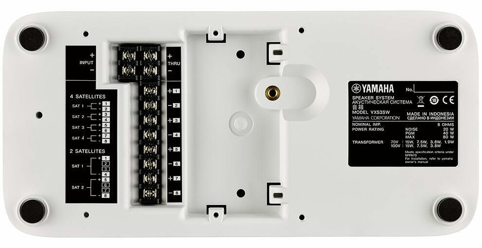 YAMAHA VXS3S — це компактний пасивний сабвуфер, розроблений для розширення низькочастотного діапазону акустичних систем Yamaha VXS та VXC. Він ідеально підходить для використання в приміщеннях, де потрібний потужний та глибокий бас при збереженні ненав'язливого та елегантного дизайну. Завдяки своїм невеликим розмірам та можливості прихованого монтажу, VXS3S є ідеальним рішенням для фонового озвучування у ресторанах, барах, кафе, готелях, бутіках та інших комерційних приміщеннях, де важливо забезпечити якісний звук, не порушуючи інтер'єр.