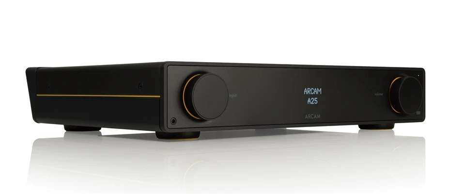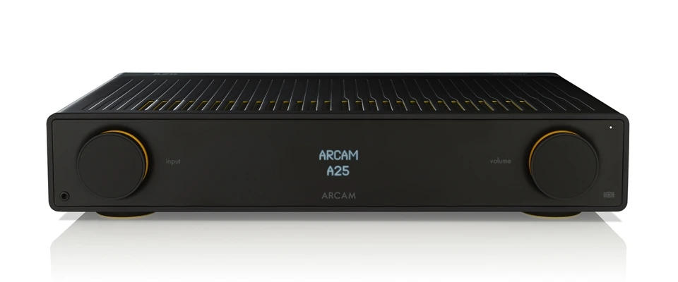 ARCAM A25 – флагманський інтегральний підсилювач серії Radia, розроблений у Кембриджі, Великобританія, для аудіофілів, що шукають поєднання преміальної якості звуку, потужності та сучасних функцій. Використовує технологію посилення класу G 5-го покоління для ультранизьких спотворень та високої динаміки. Багатий набір підключень, включаючи USB-C та Bluetooth з aptX Adaptive, робить його універсальним рішенням для Hi-Fi систем. Елегантний дизайн Radia з акцентами жовтого кольору доповнює його високу продуктивність.