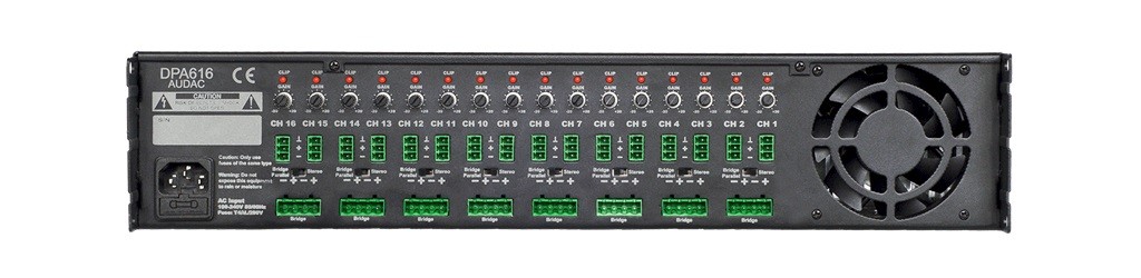 Audac DPA616 – професійний 16-канальний підсилювач потужності класу D, розроблений для багатозонних аудіоінсталяцій, таких як системи озвучення у ресторанах, торгових центрах, офісах та громадських будівлях. Компактний 2U рековий корпус, висока енергоефективність та простота експлуатації роблять його ідеальним рішенням для систем із 8 або 16 зонами. Вбудовані захисні схеми та гнучкі режими роботи (стерео, бруківка, паралельний) забезпечують надійність та універсальність.