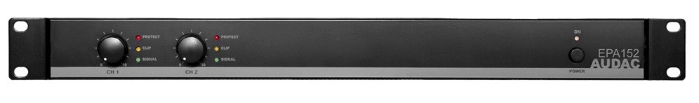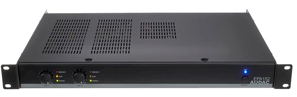 Audac EPA152 – двоканальний стереопідсилювач потужності класу D, призначений для комерційних інсталяцій, таких як системи фонового озвучування та оповіщення у ресторанах, магазинах, офісах, школах та інших громадських просторах. Пристрій забезпечує вихідну потужність 2 x 150 Вт (4 Ом), 2 x 80 Вт (8 Ом) у стереорежимі або 300 Вт (8 Ом) у мостовому режимі. Завдяки технології класу D та пасивному охолодженню підсилювач має високий ККД, низьке енергоспоживання (0.8 Вт в режимі очікування) та не потребує регулярного обслуговування. EPA152 автоматично переходить у режим очікування за відсутності вхідного сигналу, що відповідає стандартам Energy Star. Підсилювач оснащений балансними XLR входами з прохідними виходами та клемними блоками для підключення гучномовців. Вбудовані захисні системи запобігають пошкодженню від короткого замикання, перегріву, перевантаження та постійного струму. Компактний корпус 1U (483 x 330 x 44 мм, 4.1 кг) робить його ідеальним для стаціонарних та мобільних інсталяцій.