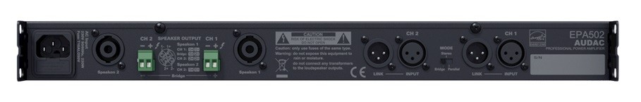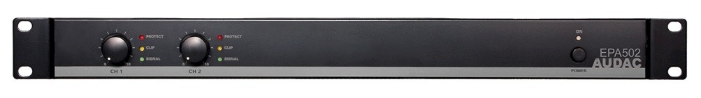 Audac EPA502 – двоканальний енергоефективний стереопідсилювач класу D, що ідеально підходить для компактних інсталяцій завдяки розмірам 1U та вазі 4,7 кг. Автоматично переходить у режим очікування (<1 Вт) за відсутності сигналу, забезпечуючи високий ККД та пасивне охолодження без необхідності обслуговування.