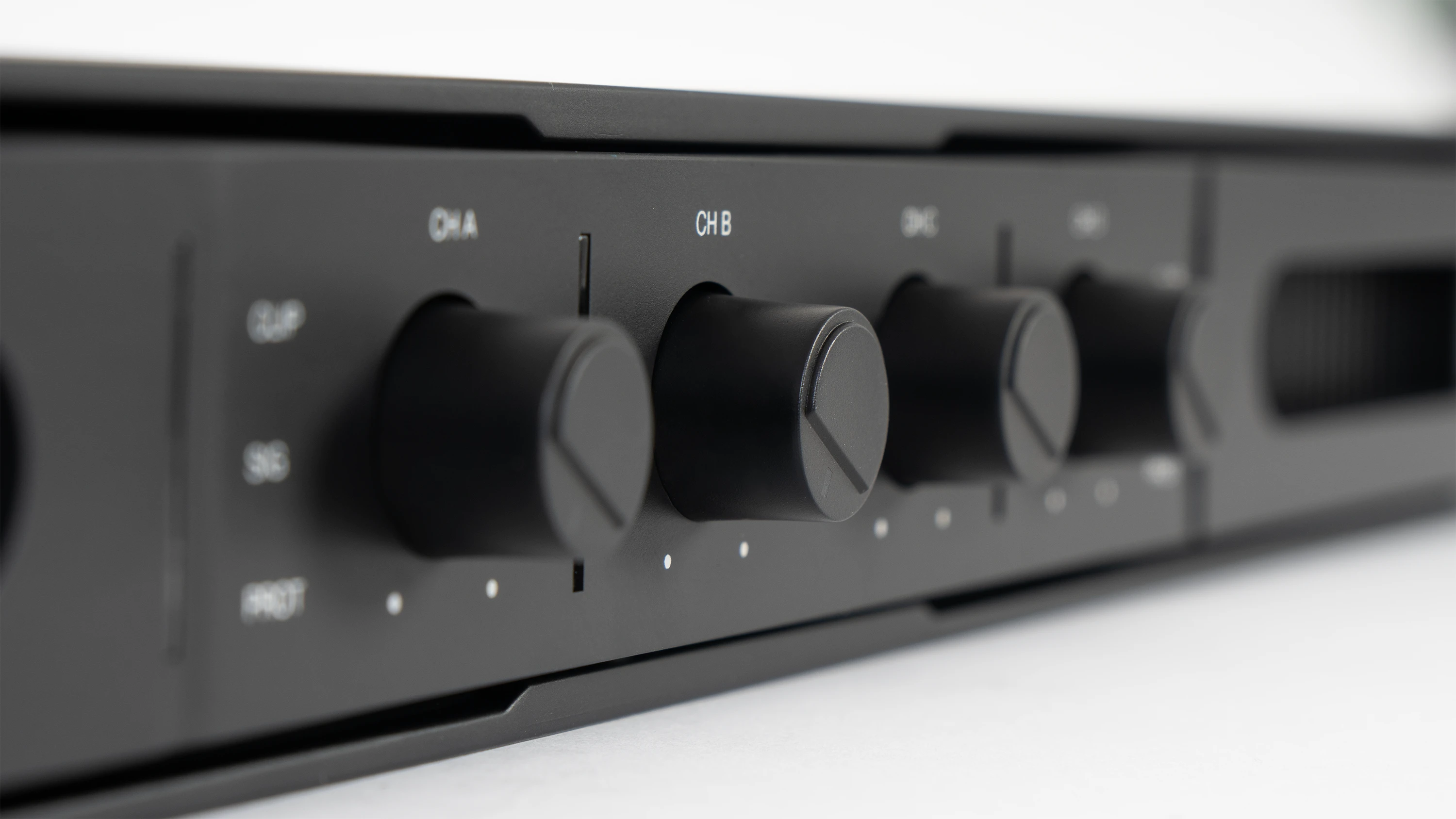 - Передня панель: Регулятори гучності для кожного каналу