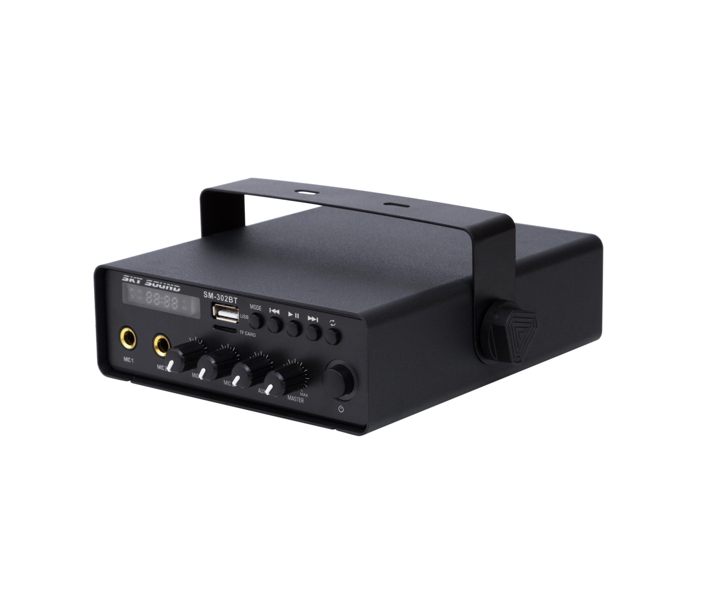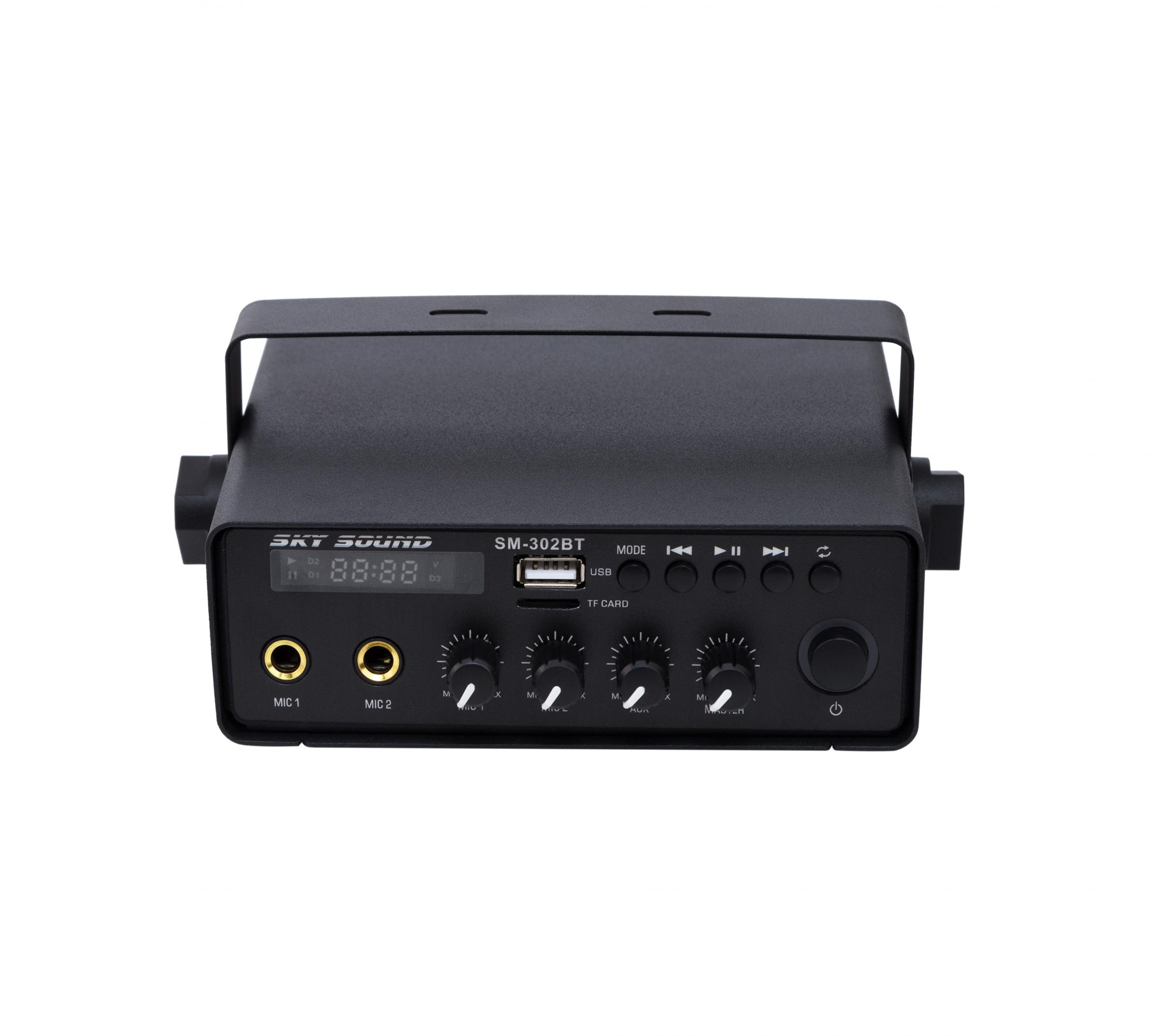 SKY SOUND SM-302 (2*30W) Bluetooth - двоканальний підсилювач потужності для підключення до низькоомких акустичним системам трансляції фонового озвучування та мовного оповіщення.