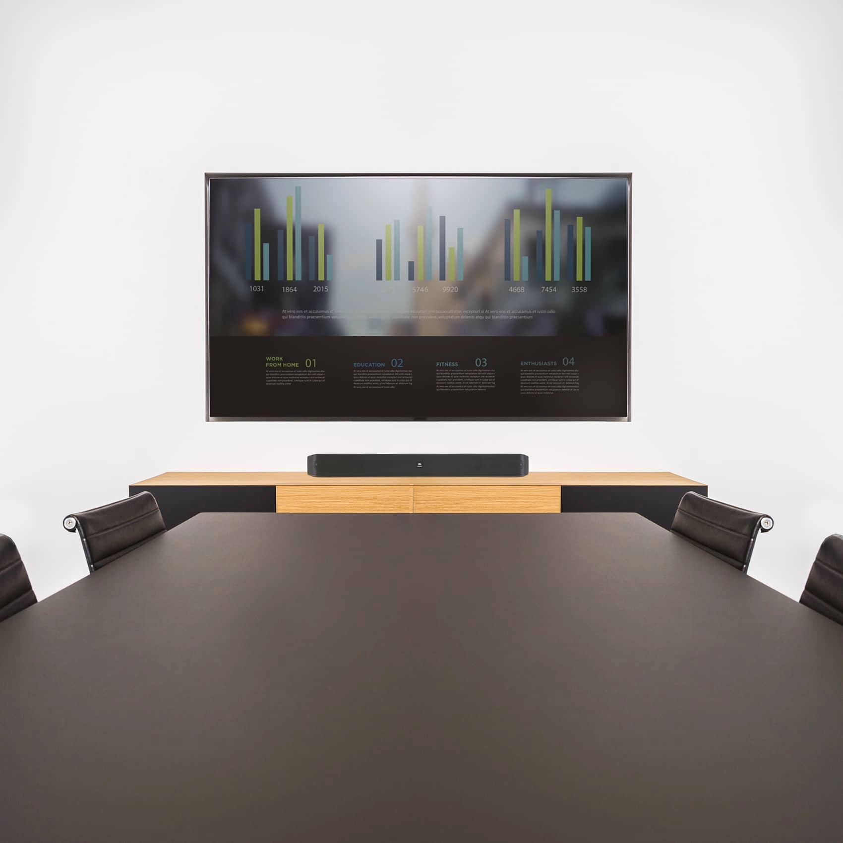 - Зосереджений звук: Фронтальні динаміки, налаштовані на людську мову, забезпечують високу чіткість та мінімізують витік звуку до сусідніх приміщень.