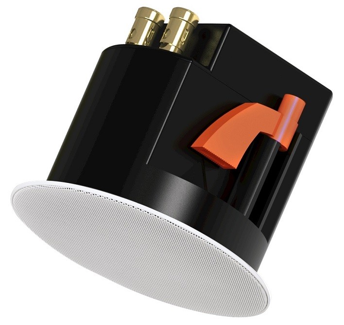 Audac CELO2D – це вбудована стельова акустична система, що є однією з молодших моделей в лінійці CELO, яка пропонує універсальні та доступні рішення для великого списку можливих інсталяцій. Колонка має малі габарити та може бути встановлена практично у будь-якому приміщенні для відтворення музичних композицій або звукових повідомлень. Озвучує аудіосигнал один 2-дюймовий широкосмуговий динамік з алюмінієвою мембраною, який функціонує в частотному діапазоні від 120 до 20 кГц при рівні +/-3 дБ. Дисперсія дорівнює 165 градусів, що дозволяє досягти об'ємної зони звукового покриття з лінійною АЧХ. Піковий звуковий тиск може досягати 93 дБ. Ця версія акустичної системи призначена для роботи в парі з підсилювачем потужності з навантаженням 16 Ом. У цьому випадку тривалий звуковий тиск дорівнюватиме 10 Вт, а максимальний – 20 Вт. Можливість працювати у складі трансляційної мережі на 100 В пропонує опціональний вологостійкий трансформатор WTR06 із вихідною потужністю 6 Вт. Корпус даної АС реалізований з легкого та міцного ABS-пластику. Для захисту динаміка використовується тонкий гриль товщиною лише 1 мм. Він прикріплюється до корпусу за допомогою магнітів. Для підключення до підсилювача використовуються пружинні затискачі Gold-Con, а кріплення в монтажному отворі забезпечує спеціальний механізм із двома гвинтами. Комплект поставки включає гриль GLC02/W (колір білий, RAL9003) і шаблон для вирізу. Окремо можна придбати грилі GLC02/B (колір чорний, RAL9005) та GLC02/P (для фарбування).\