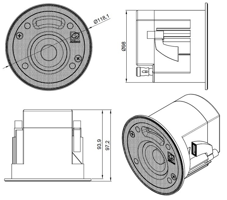 Audac CELO2DI – це вбудована стельова акустична система з лінійки CELO, що пропонує компактні та доступні рішення для звукового оформлення різних приміщень, включаючи офіси, кафе, магазини та освітні заклади. Пристрій відрізняється малими габаритами та універсальним встановленням, забезпечуючи якісне відтворення музики та звукових повідомлень. Аудіосигнал озвучує 2-дюймовий широкосмуговий динамік з алюмінієвою мембраною, що працює в частотному діапазоні 120 Гц. 20 кГц із нерівномірністю +/-3 дБ. Дисперсія 165 градусів створює об'ємну зону звукового покриття із лінійною АЧХ. Максимальний звуковий тиск досягає 93 дБ.