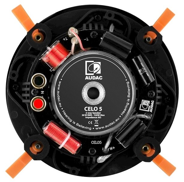 Audac CELO5I – це вбудована стельова акустична система з лінійки CELO, призначена для різних закритих інсталяцій, таких як торговельні майданчики, громадські місця дозвілля, харчування та розваг. Модель оснащена коаксіальними динаміками: 5-дюймовим вуфером та 1-дюймовим твітером, обидва з алюмінієвою мембраною, що забезпечує якісне відтворення музики та звукових повідомлень. Надтонкий гриль на магнітах та міцний корпус з ABS-пластику роблять установку зручною та естетичною. Система підтримує низькоомне підключення (8 Ом) та трансляційні мережі 100 В з опціональним трансформатором WTR24.