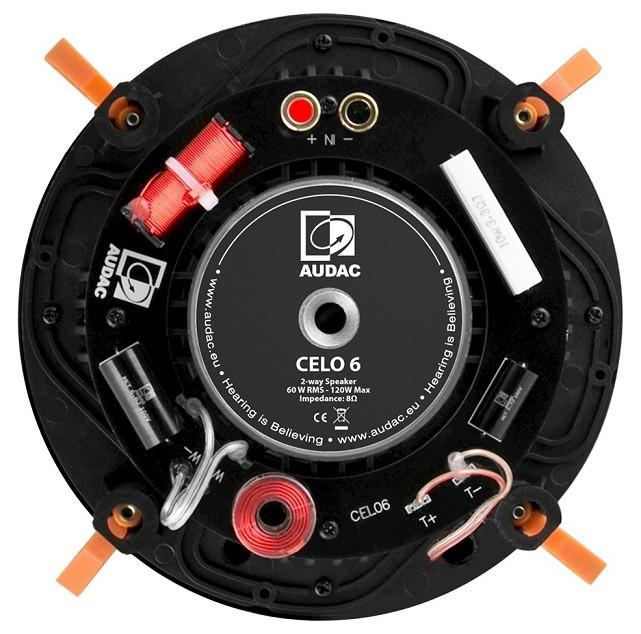 Audac CELO6 – це високоякісна вбудована стельова акустична система із серії CELO, розроблена для використання в кафе, барах, магазинах, школах, лікарнях та інших подібних закладах. Модель забезпечує чудове відтворення як фонової музики, так і звукових повідомлень. Оснащена коаксіальною системою з 6-дюймовим вуфером та 1-дюймовим твітером з алюмінієвими мембранами, що гарантує рівний та достовірний звук. Тонкий гриль товщиною 1 мм та міцний корпус з ABS-пластику забезпечують естетичний вигляд та надійність. Система підтримує низькоомне підключення (8 Ом) та трансляційні мережі 100 В з опціональним трансформатором WTR24.