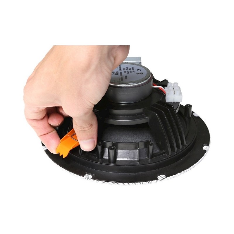Audac Cena710DI – це вбудована акустична система із серії CENA, призначена для стельового монтажу. Модель має бюджетну вартість, компактні габарити, якісне звучання, а також спеціальну технологію кріплення, що дозволяє з успіхом використовувати її в магазинах, ресторанах, пабах, офісах, школах, університетах та інших подібних ін. Для відтворення фонових музичних композицій або різних аудіоповідомлень є один 6.5-дюймовий широкосмуговий динамік, який дозволяє озвучити діапазон частот від 150 Гц до 15 кГц при рівні +/-3 дБ. Акустична система з номінальним опором 16 Ом, має тривалу потужність 10 Вт і максимальну 20 Вт. Дисперсія 140 градусів забезпечує досить широку зону звукового покриття, а рівень пікового звукового тиску здатний доходити до 106 дБ.