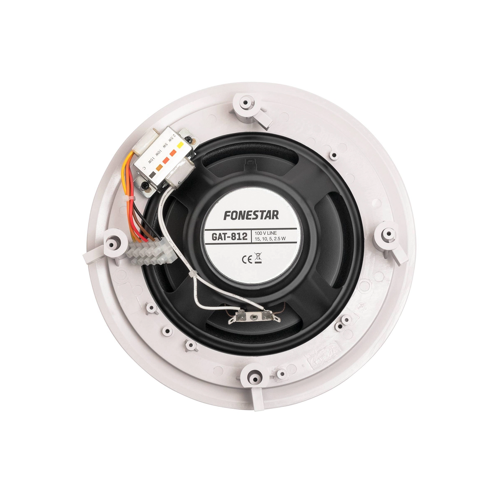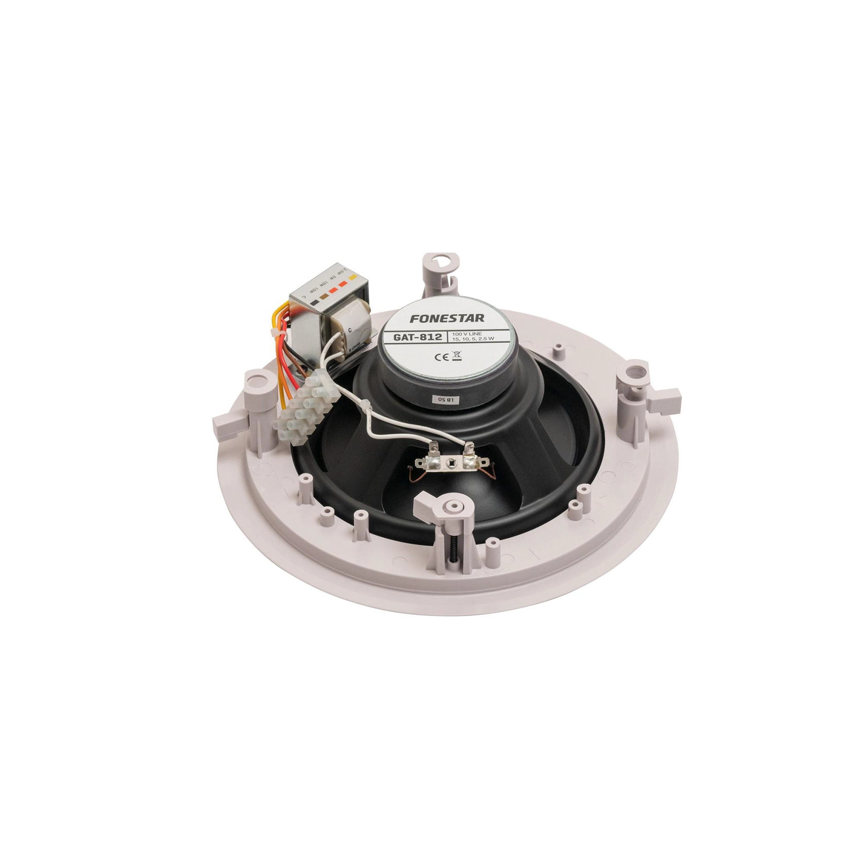 Fonestar GAT-812 – це вбудована стельова коаксіальна акустична система із серії GAT, призначена для звукового оформлення закритих приміщень, таких як офіси, ресторани, магазини та інші громадські простори. Модель поєднує високу якість звуку, елегантний дизайн та простоту установки, що робить її придатною для фонової музики та голосових оголошень.