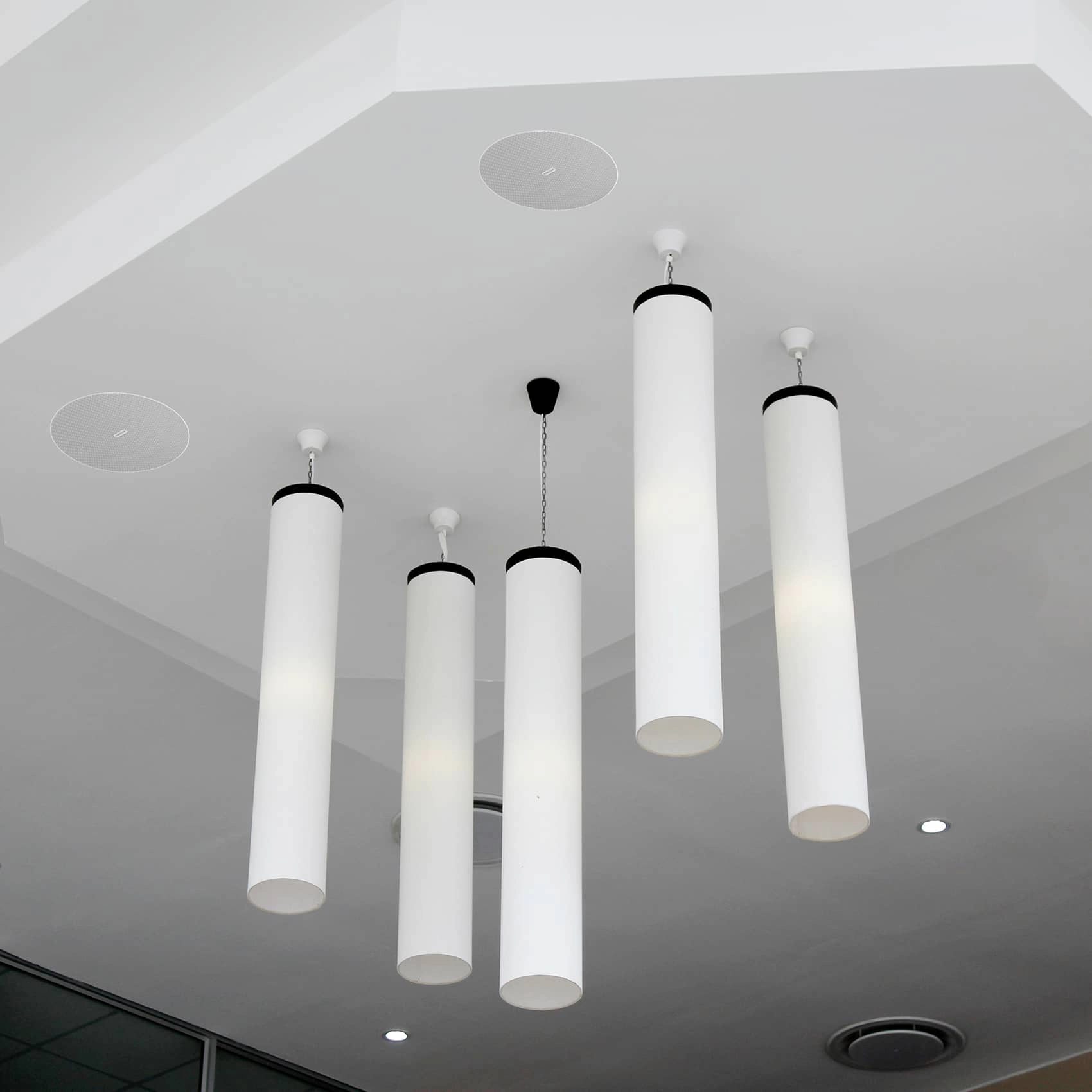 Практична і безпечна конструкція: алюмінієва решітка, що відокремлюється, яку можна фарбувати, система захисту від падіння і кріплення для страхувального троса полегшують установку навіть у стелях з обмеженим доступом. чіткої та широкої частотної характеристики від 100 Гц до 20 000 Гц.