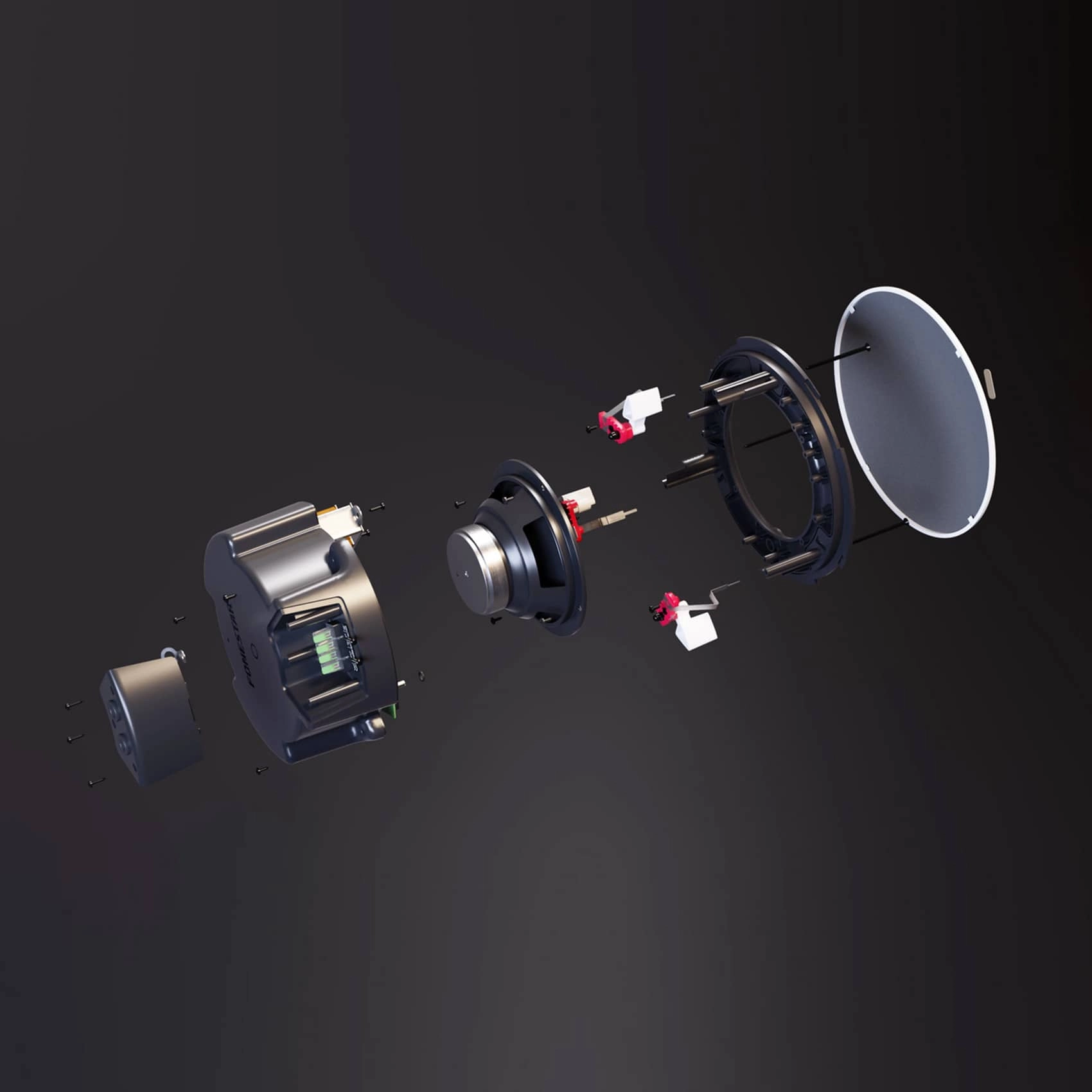 Модель підтримує низькоомний режим (8 Ом) з номінальною потужністю 20 Вт (пікова – 25 Вт) та трансляційну мережу 100 В. Корпус з ABS-пластику та алюмінієва низькопрофільна решітка, покрита високостійкою фарбою, гарантують довговічність та естетичний зовнішній вигляд без плям іржі. Грати безрамкові, з можливістю персоналізації (знімний логотип, фарбування). Установка спрощена завдяки швидкороз'ємним клемам, системі захисту від падіння, кронштейнам із гвинтовим регулюванням та страховому тросу. Після встановлення система має клас захисту IP-44, стійкий до бризок.