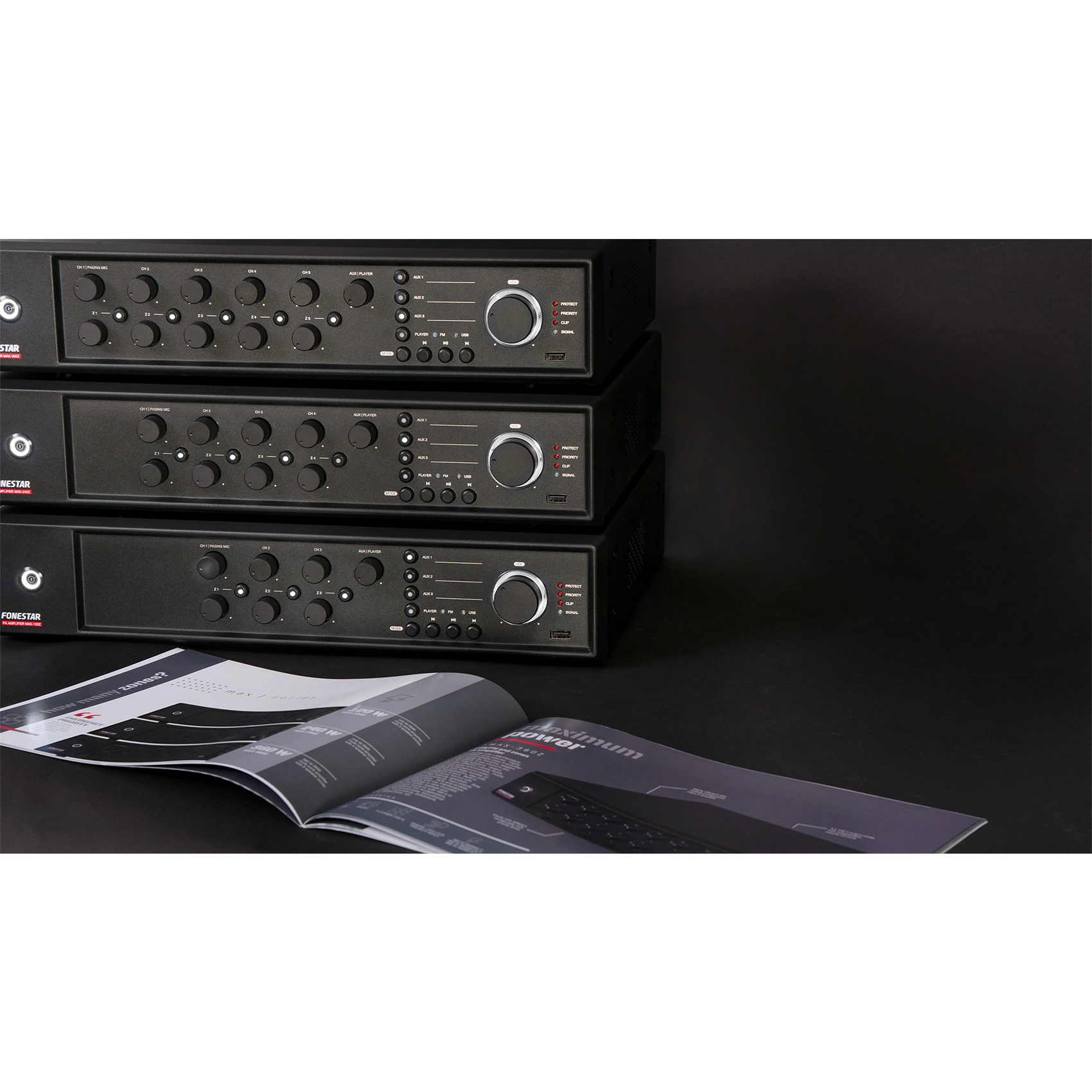 Fonestar MAX-240Z ідеально підходить для систем оповіщення та фонової музики в комерційних та громадських просторах, де потрібний багатозонний розподіл звуку. Пристрій підтримує до 100 гучномовців у лінії 100 В або низькоомні системи, що робить його придатним для великих інсталяцій, таких як торгові центри, школи, офіси та ресторани. Мікрофонні входи з пріоритетом та функція chime роблять його зручним для оголошень, а вбудований плеєр – ndash; для фонової музики.