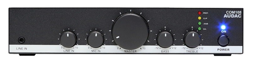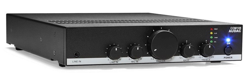 Audac COM108 ідеально підходить для фонового озвучування та систем оповіщення в магазинах, барах, ресторанах та офісних будівлях. Компактний розмір, просте управління та можливість підключення різних джерел звуку (медіаплеєри, радіотюнери, інтернет-радіо) роблять його універсальним рішенням для невеликих комерційних просторів, де потрібний якісний звук та простота експлуатації.