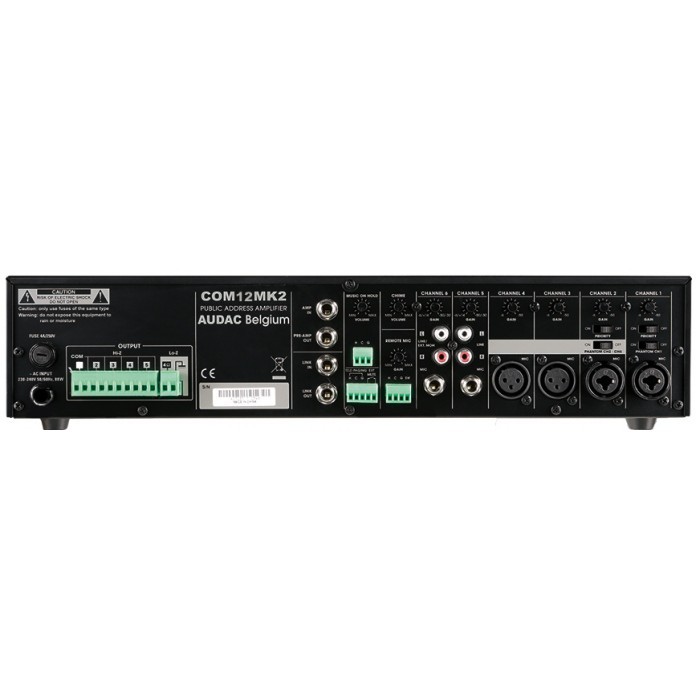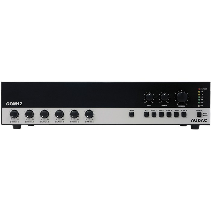 Audac COM12MK2 ідеально підходить для озвучування кафе, готелів, торгових майданчиків, офісів та інших комерційних приміщень, де потрібне якісне відтворення фонової музики, чітка передача голосових повідомлень та інтеграція із системами оповіщення. Гнучкість комутації та підтримка до шести зон роблять його універсальним для середніх та великих інсталяцій.