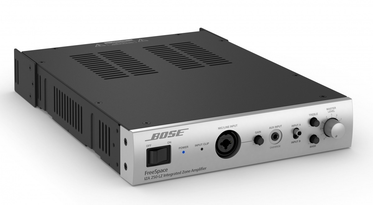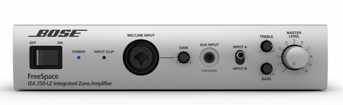 Bose FreeSpace IZA 250-LZ – це двоканальний мікшер-підсилювач із номінальною потужністю 50 Вт на канал, призначений для низькоомного навантаження (4 або 8 Ом). Пристрій оснащений вбудованим мікшером, що підтримує два основні стереовходи (RCA), балансний мікрофонний/лінійний вхід (XLR/TRS), додатковий лінійний вхід (3.5 мм Jack) та вхід для оповіщення (Euroblock). Вбудована функція Opti-Voice забезпечує плавний перехід від фонової музики до голосових повідомлень, а підтримка зовнішніх контролерів Bose CC-1 та CC-2 дозволяє керувати гучністю віддалено. Підсилювач сумісний з акустичними системами Bose FreeSpace DS 16 та DS 40, а також інтегрується у складні системи озвучення та пожежної безпеки завдяки роз'єму mute. Компактний дизайн та природне охолодження роблять його зручним для встановлення у різних комерційних приміщеннях.