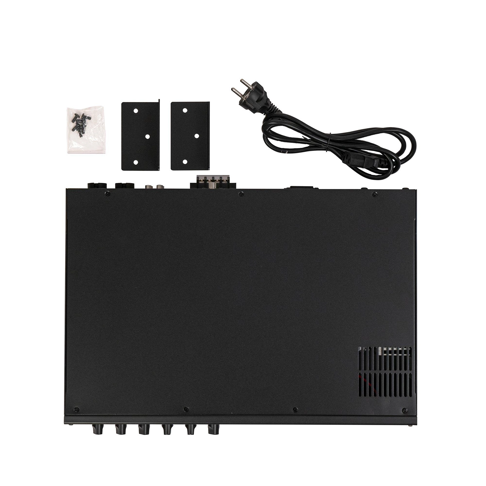 - Інтеграція: Комбінує підсилювач, мікшер та програвач в одному пристрої з функцією фантомного живлення та пріоритету оповіщень.