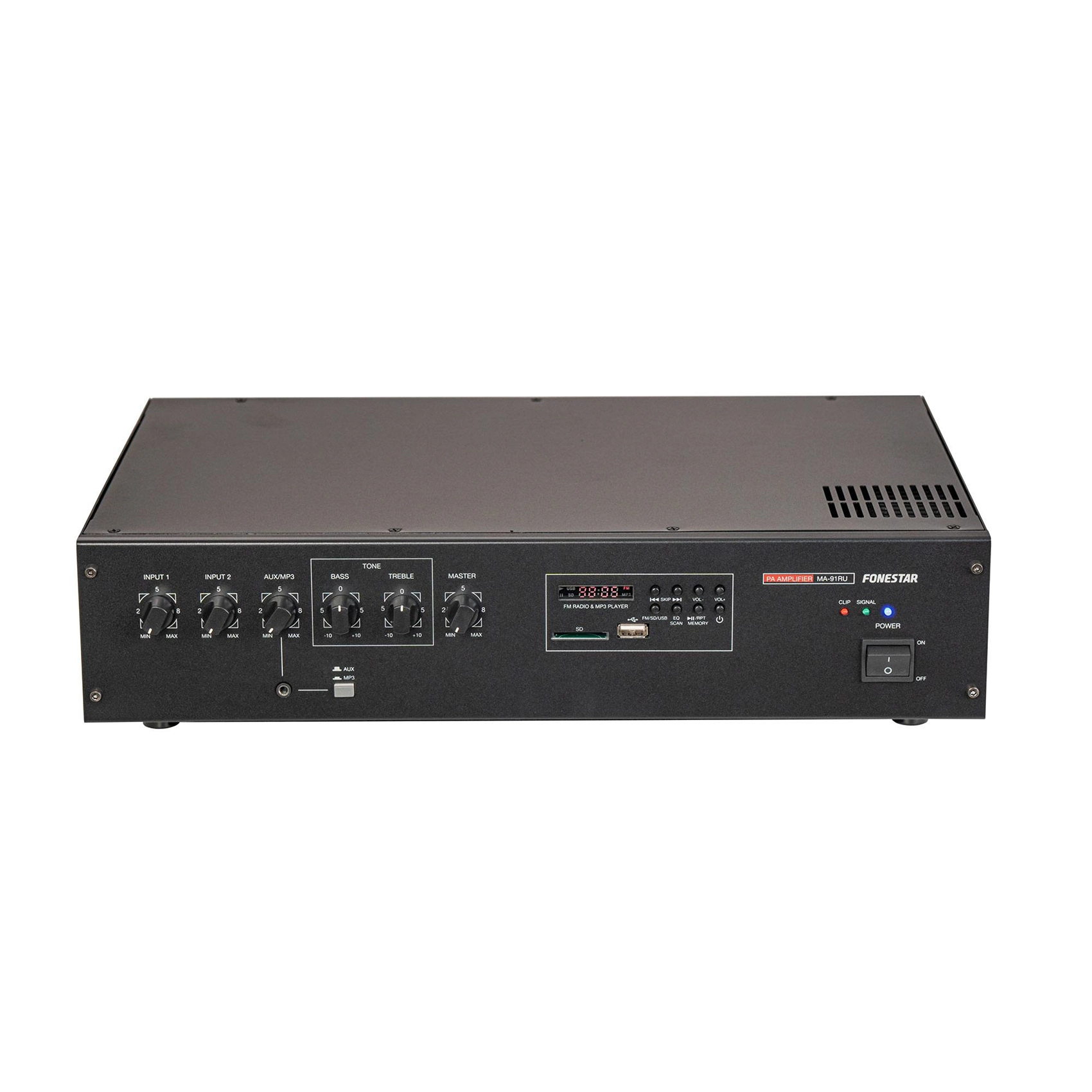 Fonestar MA-91RU – монозональний підсилювач гучномовців з функцією USB/SD/MP3 та FM-тюнером, призначений для комерційних установок, систем оповіщення та розподіленого аудіо. Підходить для магазинів, ресторанів та інших громадських місць.