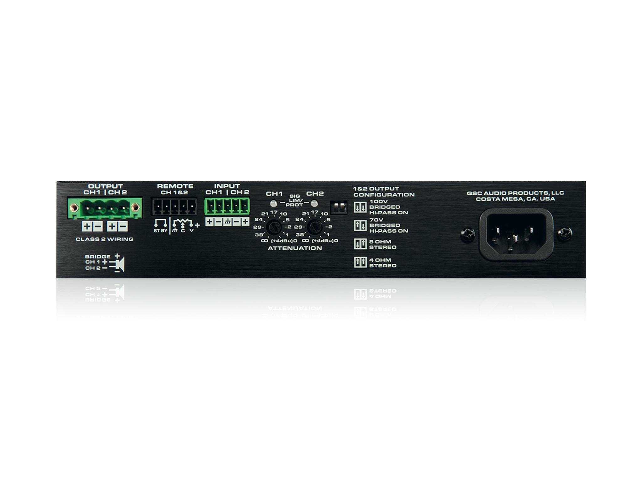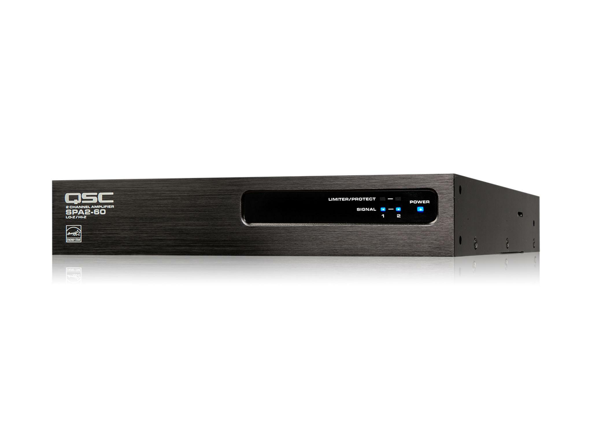QSC SPA2-60 – це компактний двоканальний підсилювач потужності із серії SPA, розроблений для невеликих комерційних інсталяцій, таких як конференц-зали, кімнати для переговорів і зони фонового озвучування. Використовує високоефективну архітектуру класу D та універсальне джерело живлення, що забезпечує конвекційне охолодження без потреби активних вентиляторів. Підсилювач підтримує низькоомні навантаження (4 і 8 Ом) з вихідною потужністю 60 Вт на канал, а також режим мостового з'єднання для отримання до 200 Вт (4/8 Ом) або до 250 Вт в режимі 70/100 В. Функція Auto-Ramp забезпечує безшумне включення та вимкнення; стандарту ENERGY STAR®. Компактний напіврічковий корпус 1U дозволяє монтувати підсилювач у стійку, під стіл або на стіну за допомогою кронштейнів, що входять до комплекту.
