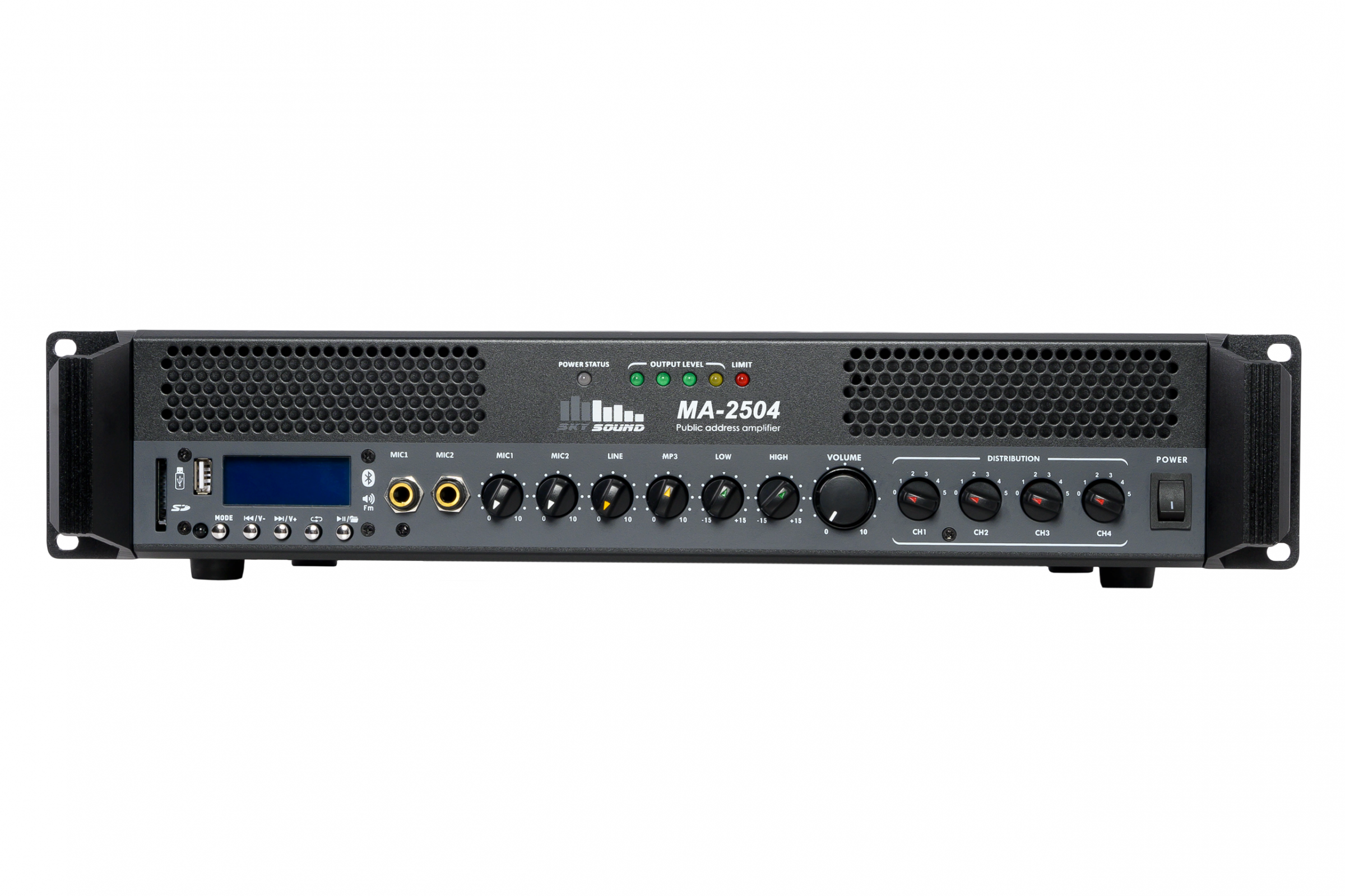 Підсилювачі потужності серії MA є ідеальним поєднанням якості та доступності у сфері озвучування систем трансляції фонового та мовного оповіщення. Передня панель та ручки підсилювача виконані з алюмінієвого сплаву, великий LCD екран, хромовані кнопки, ергономічний дизайн надають пристрою дуже делікатний та інтуїтивно зрозумілий зовнішній вигляд. Завдяки запатентованій технології захисту лінії трансляції звуку підсилювачі серії MA підходять для роботи в мережах далекого радіомовлення з використанням трансляційних акустичним систем різної потужності.