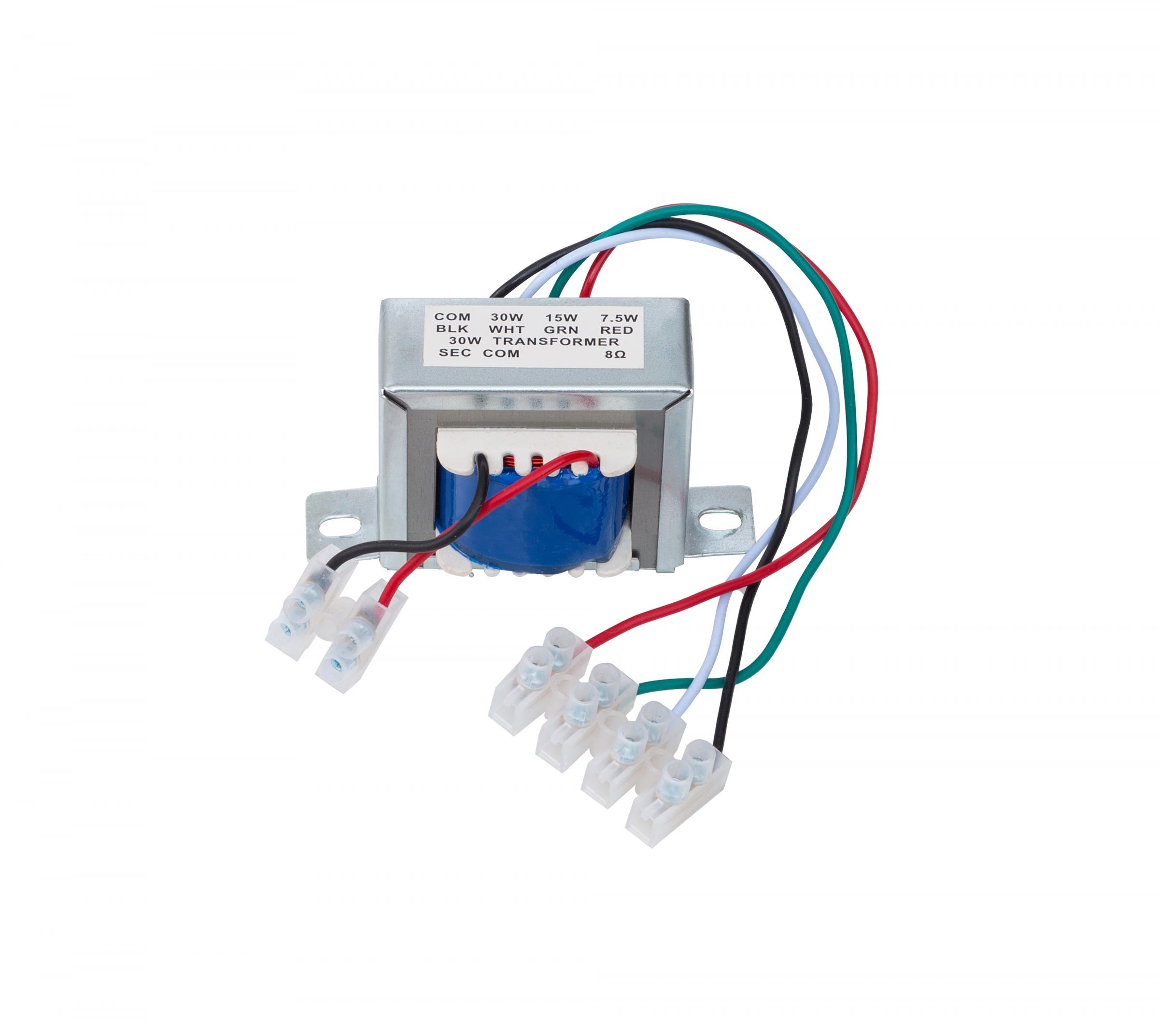 SKY SOUND STR7.5-15-30W - стовольтовый звуковой согласующий трансформатор мощностью от 7 до 30 Вт. Данный траснформатор позволяет акустическим динамикам 4-8 Ом подключаться к трансляционным усилителям мощности с выходным напряжением 100В.